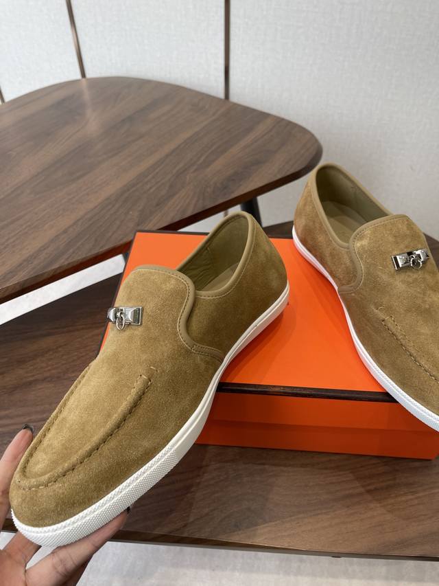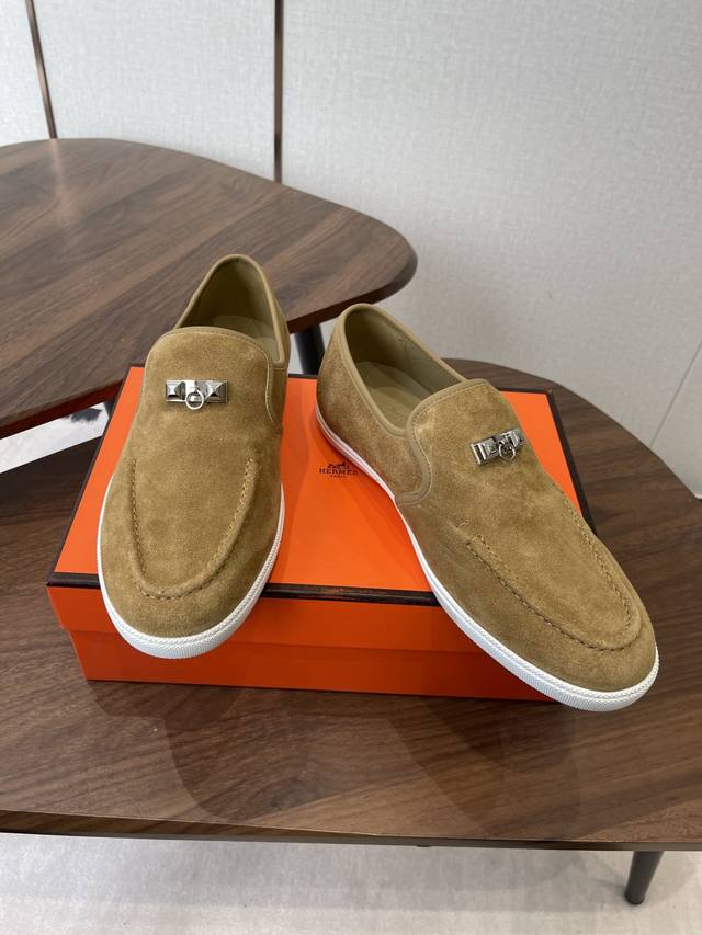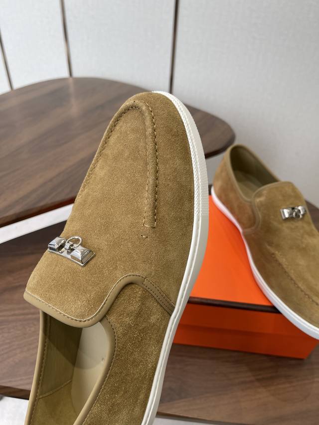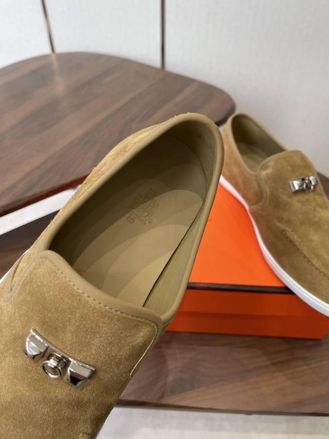 / 男款+10Hermes 爱马仕经典H 情侣款 乐福鞋 经久不衰 休闲 简约风格免系带休闲运动鞋 舒适 休闲 百搭 面料: 定制进口小牛皮 内里: 羊皮内里 大底