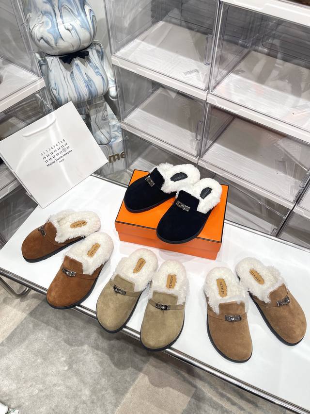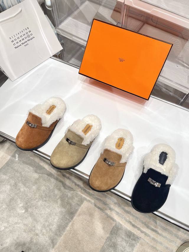 男码10 Hermes爱马仕呆萌半拖。 经典的家族语言设计!怎么搭配都好看!随意且高级的感觉 舒适度也很棒,搭配各种彩色袜子,潮爆了的高级感 顶级版本真羊毛高品质 鞋面:进口牛反绒 内里:进口羊皮毛一体 垫脚:进口混种羊皮 大底:Tpu防滑耐磨大底 码数:男39-44 45 46定做 女35-40 41 42定做