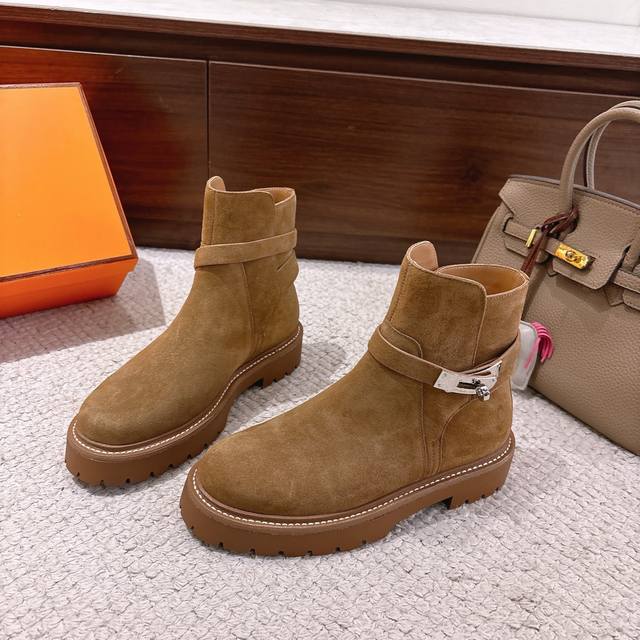 / 皮里出厂价p Hermes 爱马仕 Jeff 及踝靴系列 时尚又百搭 经典超级舒服 每个细节都做到极致 原版Swift小牛皮 麂皮 原版1:1独家私模纯钢Kel