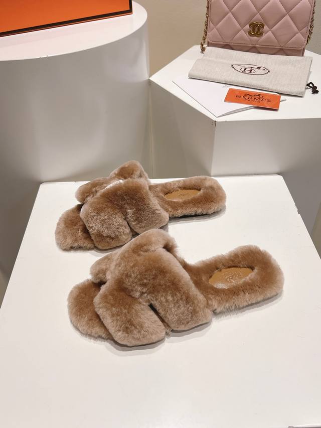 代购级 Hermes爱马仕25Ss最新秋冬Kelly毛拖 超级百搭好看时髦 超多明星网红种草 秋冬必备 随意舒适高级感 鞋面:进口羊京...