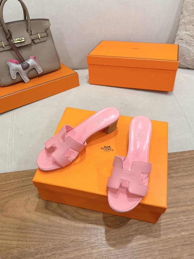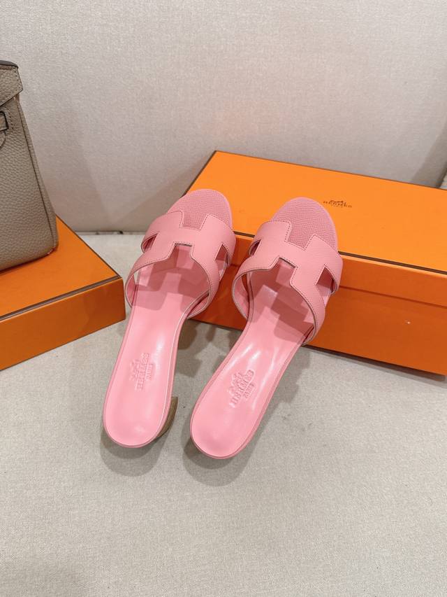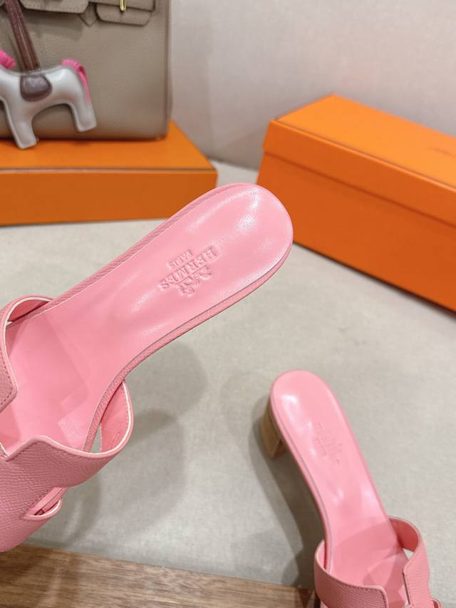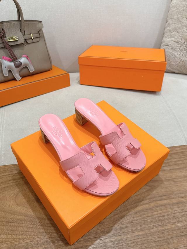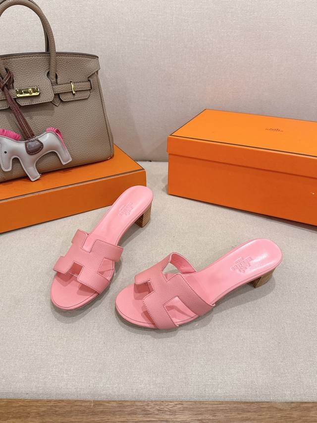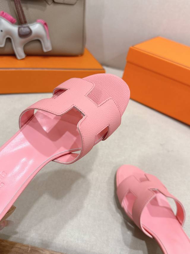 爱玛仕 25 2025新品 顶级版本经典H型Oran刺绣小牛皮粗跟拖鞋系列 鞋面:原版特定牛皮 内里:进口混种羊皮...
