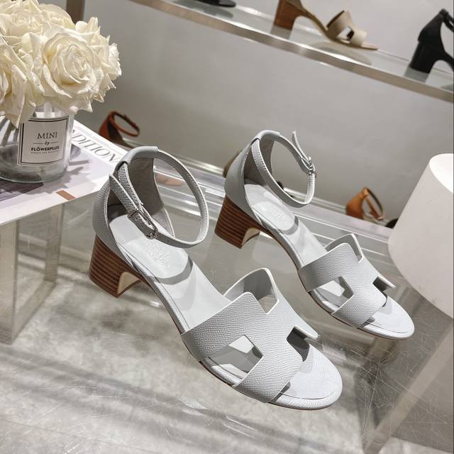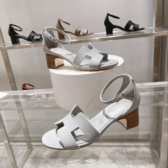 粗跟系列』 出厂价p Herme*25早春专柜新款高跟凉鞋系列 鞋面:原版材料 内里:进口混种羊皮 跟高: 5Cm 大底:原版意大利真皮大底 鞋码: 35.36
