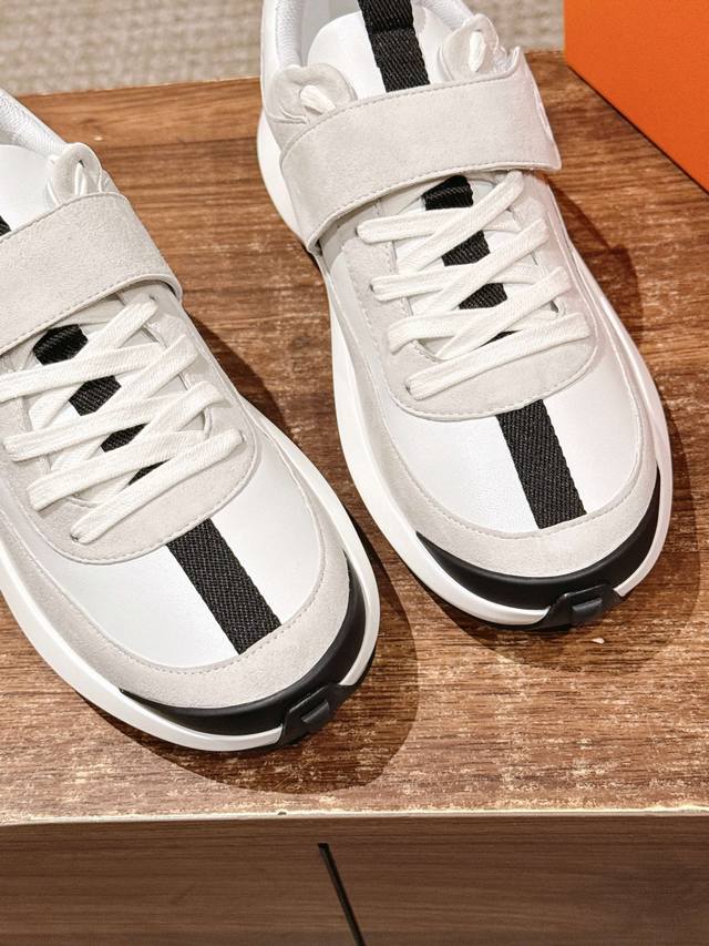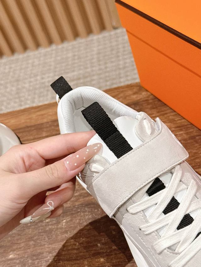 莞产 Hermes 爱玛仕Khea魔术贴系带德比运动鞋 爱马仕代购品质~出入无压力,Hermes Khea系带运动鞋独特黑白搭配+带条绑带设计~若隐若现小性感~个性十足 超透气 超柔软 光脚穿或搭配中筒袜 配长裙子 裤子 都巨洋气~巨高级~有型又有范~很有格调 区别市场通货~代购高品质绝对完全不一样 鞋面材料:进口牛皮+羊反绒 内里材料:进口耐黄加密网布 大底材料:Ip+组合大底 尺码:35 36 37 38 39 40 40不退换
