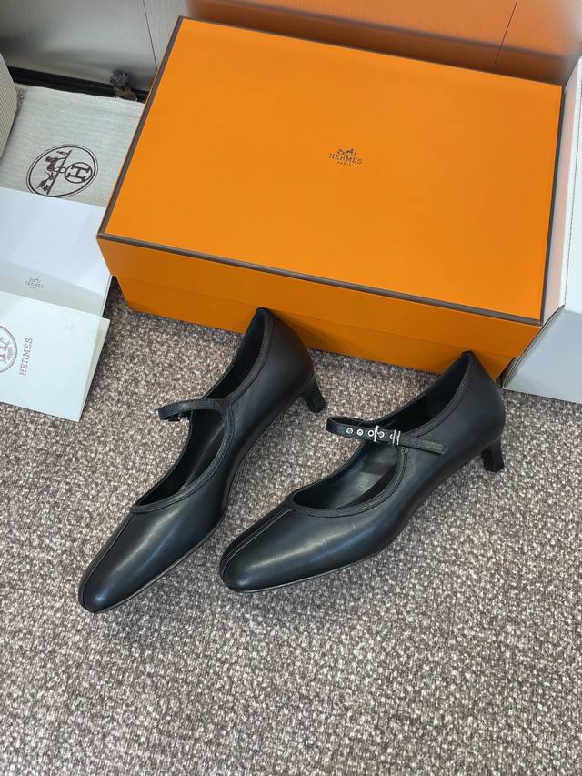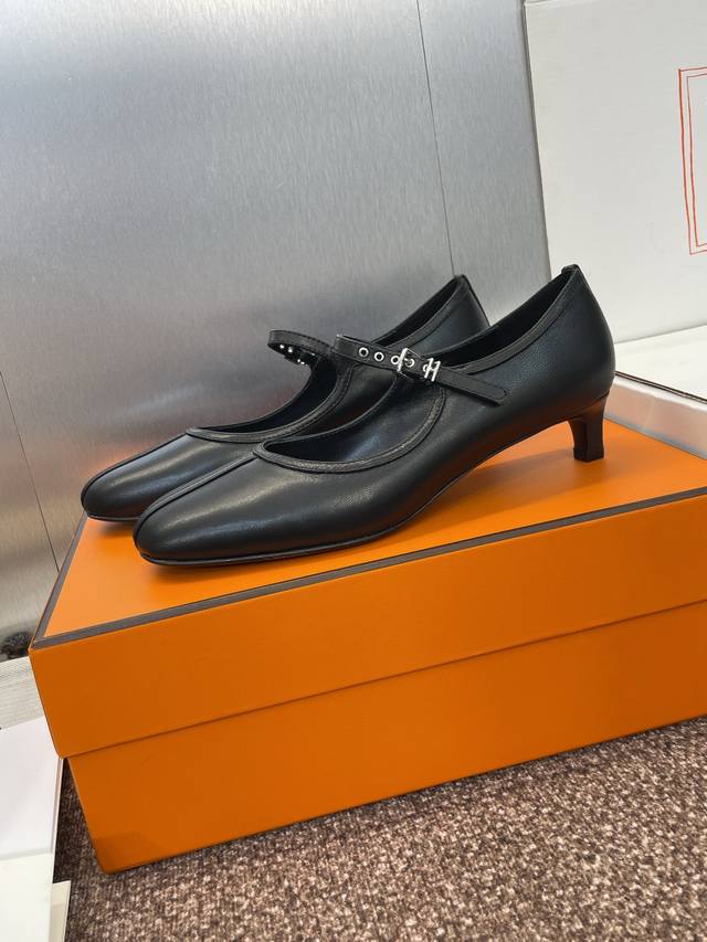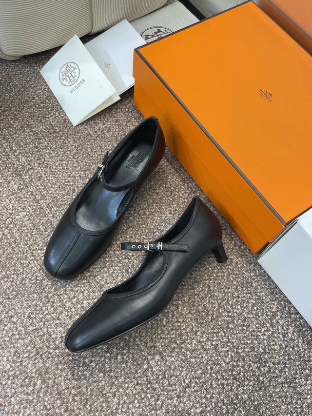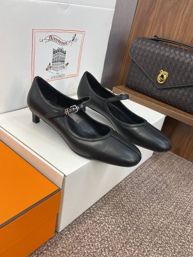 / 莞货 代购级 爱马仕 Hermes 2025春夏新款Lilia拼色芭蕾舞娃娃女鞋 H家字母Logo五金皮带扣低跟圆头玛丽珍乐福单鞋 材质:进口小牛皮 进口真丝绒