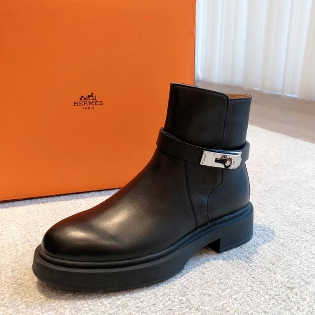 莞货 H家22Ss New Kelly经典短靴,经楦靴型+英伦复古设计,经典耐看!原版倒模楦型,极致1:1形体,进口高端面料呈现出精致质感! DDD 开模定制A级高密私模大底,奢华包装! DDD -无二品质,35-39可定40 DDD