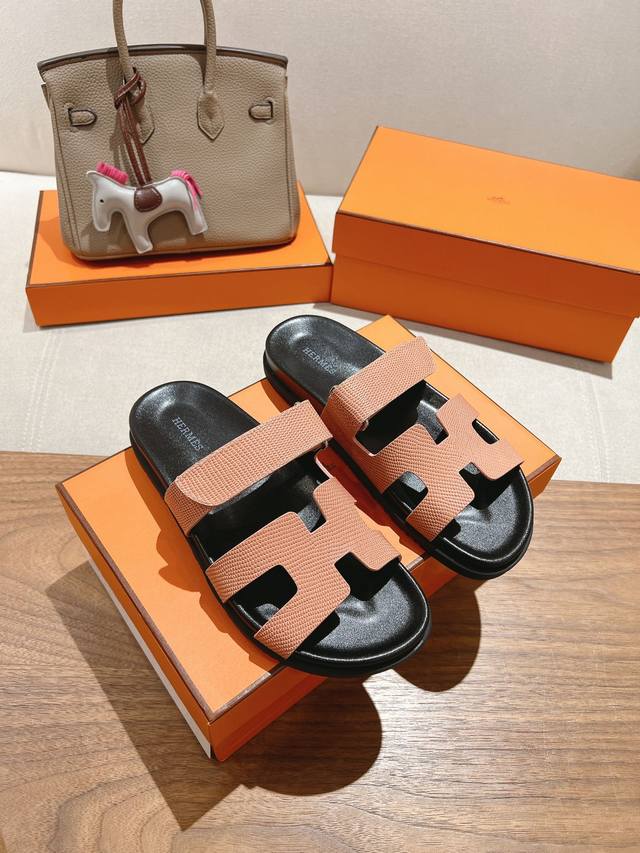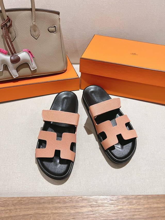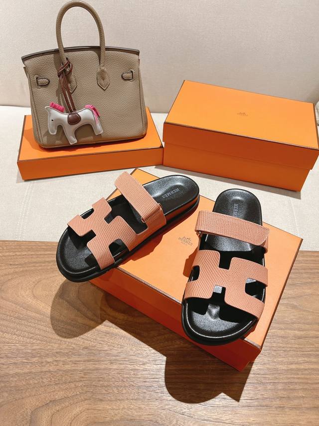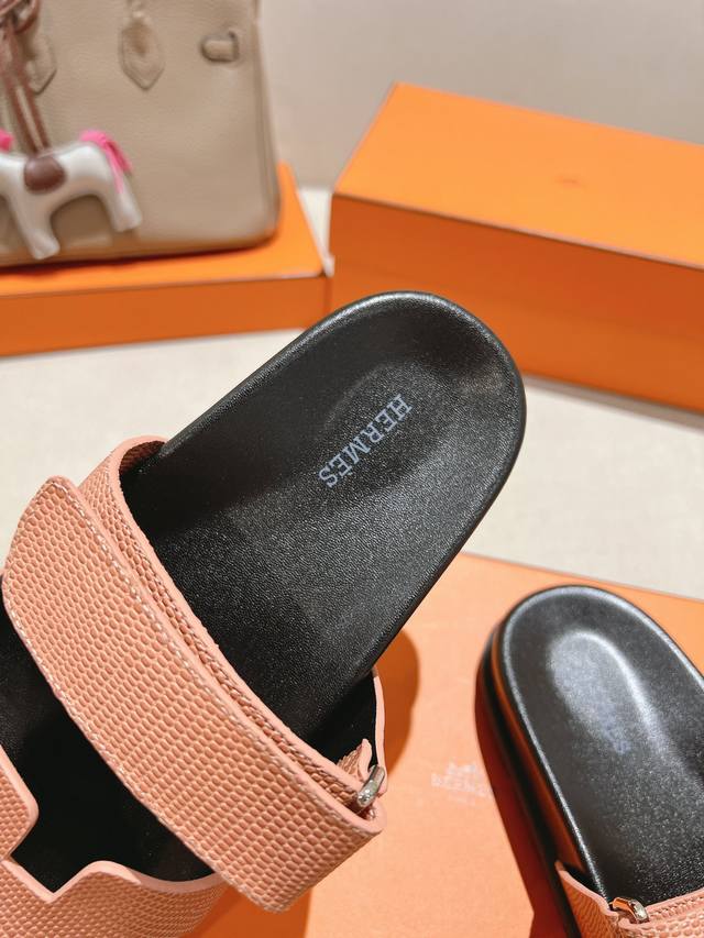 出厂女款 顶级版本 H家 25秋冬新款 Herme*S最近火到不行的厚底凉拖,搭配各种彩色袜子,潮爆了 鞋面:进口小牛皮...