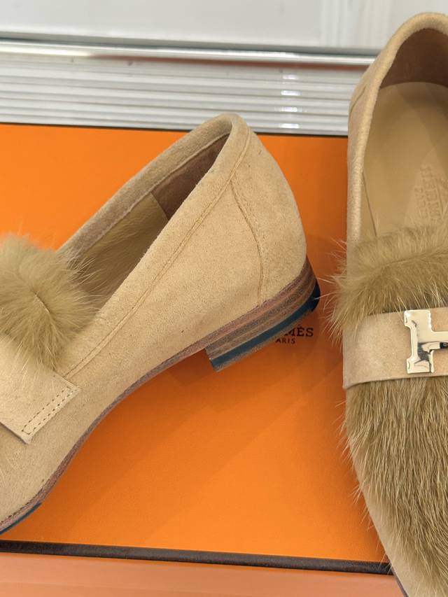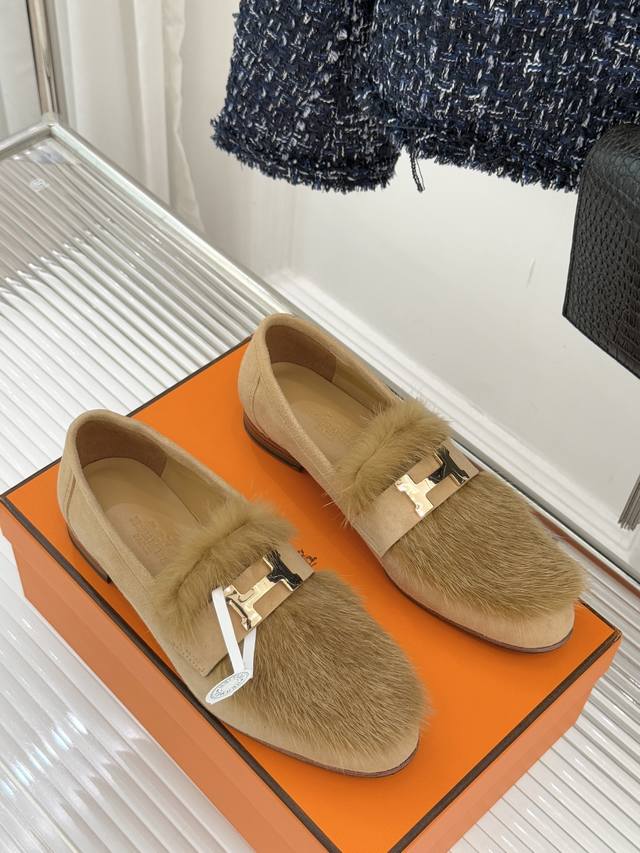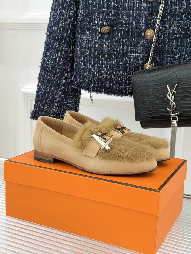 顶版半拖 乐福鞋 DDD 配原版高档飞机盒 DDD HermèS 爱马仕经典复古羊毛 DDD H金属扣乐福鞋 DDD 标志性H形金属扣居于鞋身 DDD 经精雕与多层抛光电镀而成 DDD 流转着低调却难掩的光泽 DDD 既是品牌基因的鲜明注脚 DDD 亦是点睛的奢华符号。 DDD 它以细腻羊毛织就鞋面 DDD 意大利手工坊的精湛技艺藏于细节 DDD 羊毛纹理与金属质感形成优雅碰撞, DDD 搭配叠加而成的真皮大底 DDD 从职场西装的利落搭配, DDD 到休闲针织的松弛造型 DDD 它无需刻意张扬 高级感满