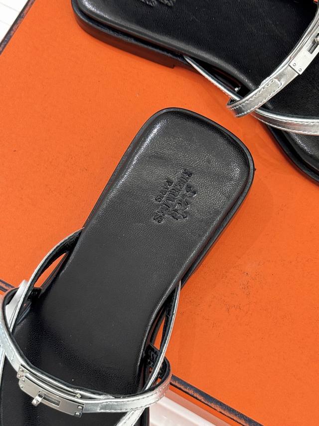 FFF 顶版厂价 DDD HermèS 爱马仕25Wf新品Kelly扣 DDD 细带夹脚人字拖鞋 DDD 当Kelly包的传奇基因邂逅夏日步履 DDD 这款凉鞋便成了优雅的具象化表达。 DDD 标志性的旋转Kelly金属扣设计 DDD 经匠心打磨成为足尖的点睛之笔 DDD 钯金镀层流转着低调光泽 DDD 复刻品牌百年的奢华密码。 DDD 纤细皮质绑带如丝带般轻覆脚背 DDD 又以利落剪裁勾勒出脚踝的纤细轮廓。 DDD 意大利手工缝制的鞋履结构与技术 DDD 让每一步都兼具稳定与优雅 DDD 打破精致与舒适