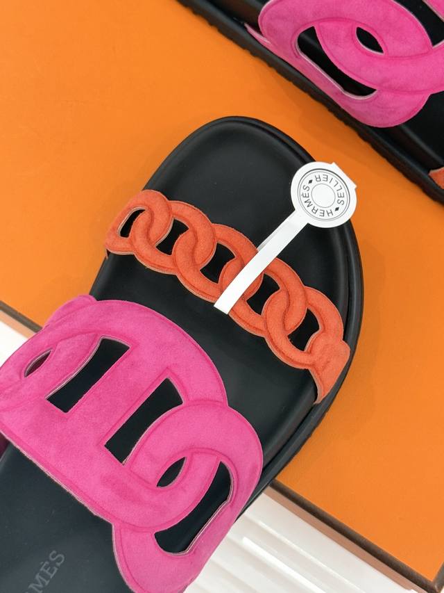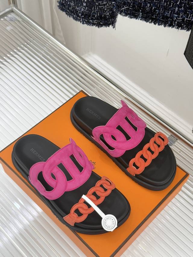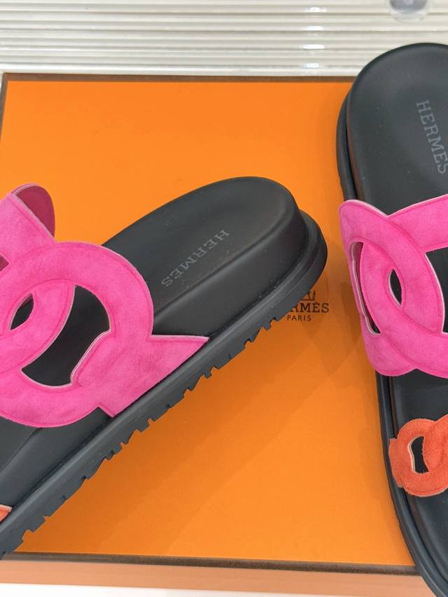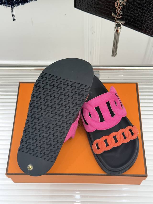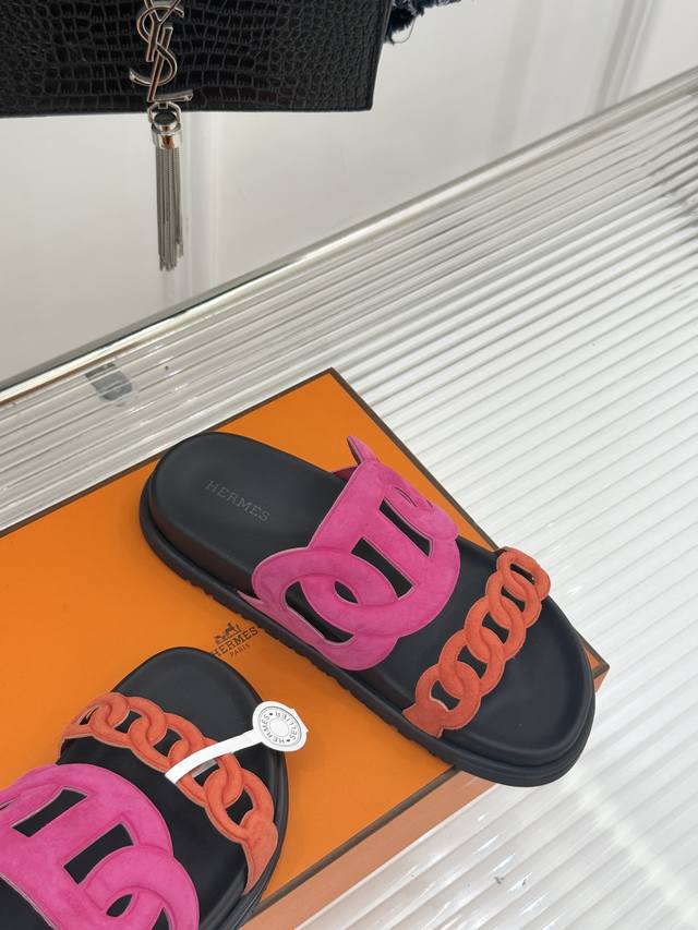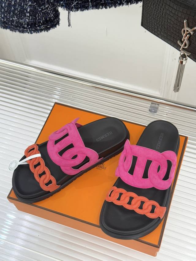 顶版 配原版飞机盒 DDD HermèS 爱马仕经典镂空猪鼻子休闲 DDD 懒人拖鞋 DDD 标志性的猪鼻子镂空设计俏皮吸睛 DDD 在简约中彰显品牌底蕴 高级感满满 DDD 每一处细节都经得起考究 DDD 夹脚设计巧妙贴合足部 既稳固又舒适 DDD 无论是漫步海滨 还是在城市街头穿梭 DDD 它都是点亮造型的不二之选 DDD 为你的夏日穿搭注入一抹随性优雅 。 DDD 面料采用原版定制皮料 DDD 内里垫脚均为混种羊皮 DDD 原版开模定制防滑大底 DDD Size:35-39 40 41 42定制 D