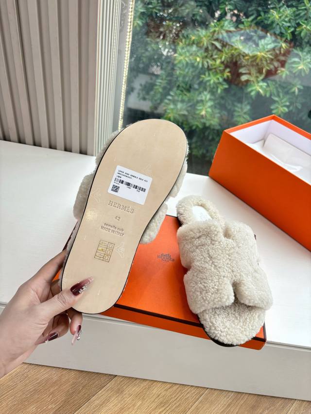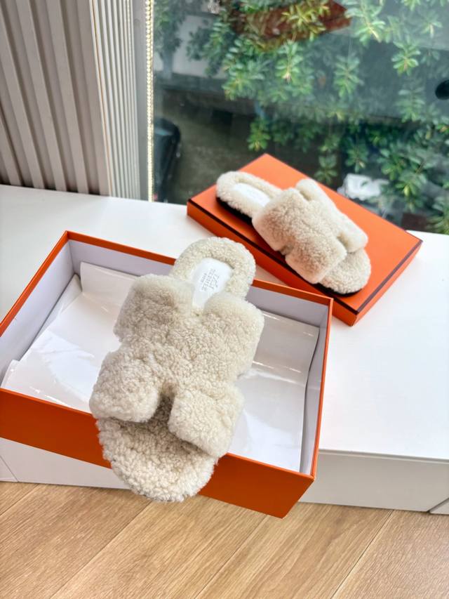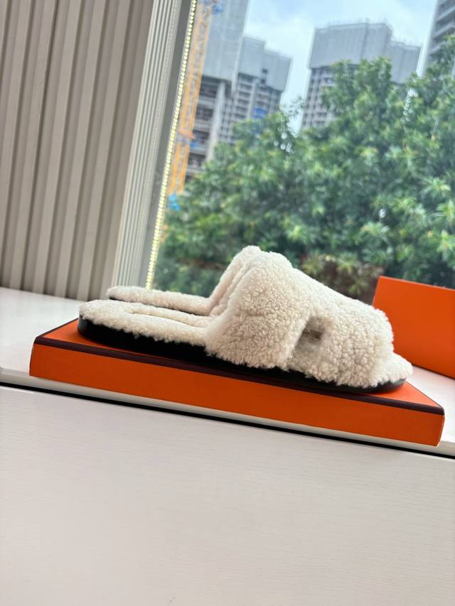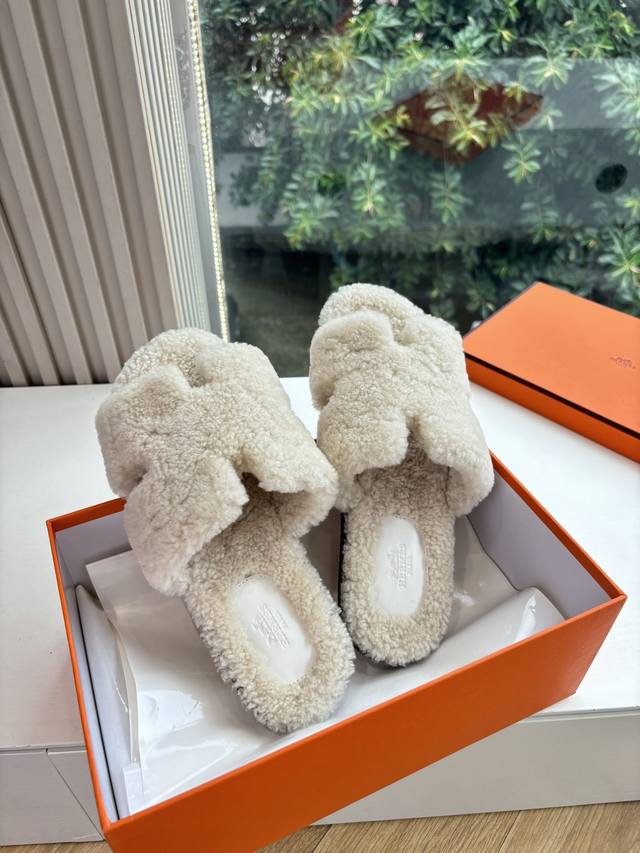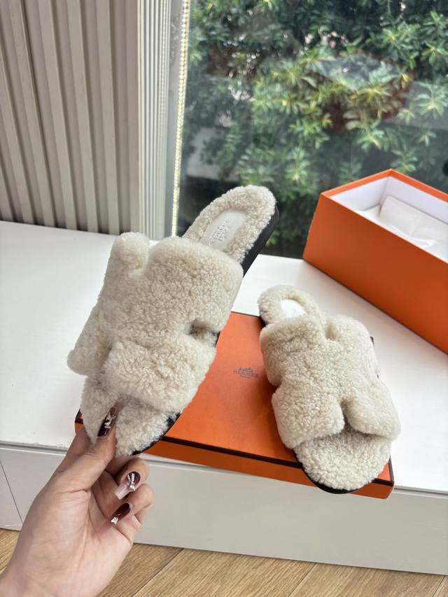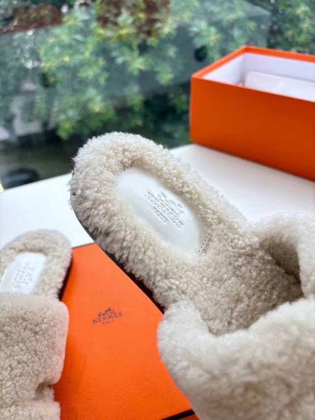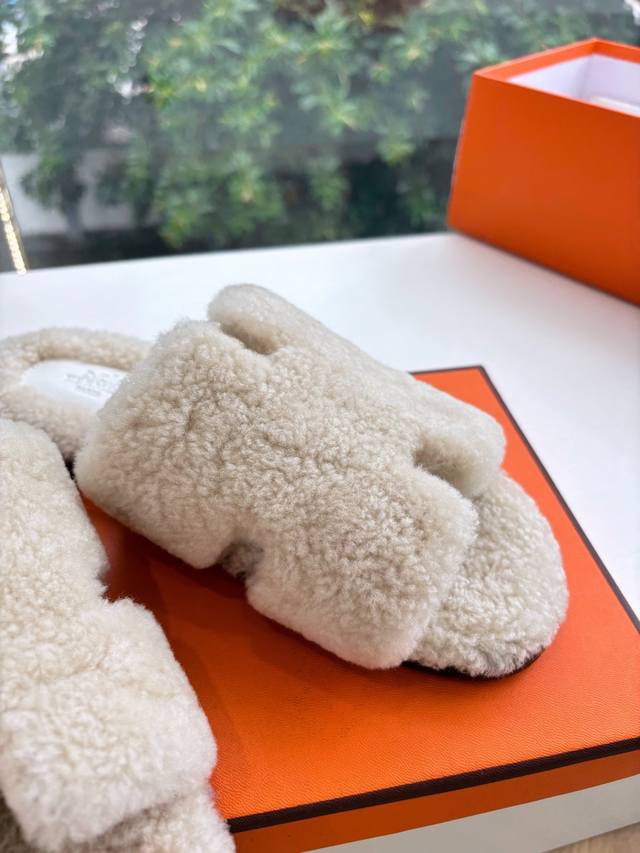 / 顶版2025新款Hermes爱马仕专柜新款最近火到不行的情侣款H二舅鞋猪鼻子毛毛拖鞋棉鞋凉鞋拖鞋,搭配各种彩色袜子,潮爆了 鞋面:进口颗粒羊羔毛 内里:进口羊毛