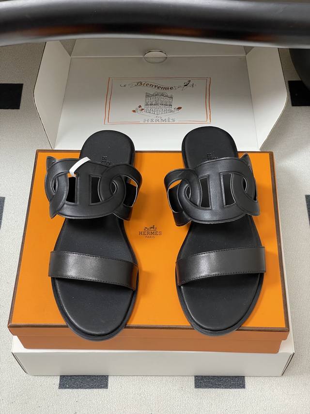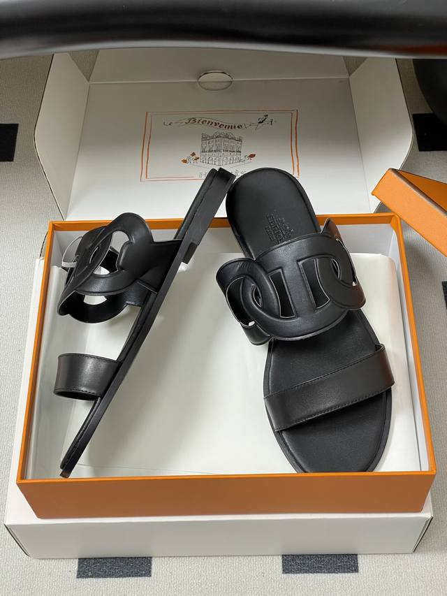 顶级品质 配高档飞机盒 DDD Hermes 爱马仕 H家 Lagune凉鞋系列猪鼻子平底凉拖鞋 DDD 小牛皮凉鞋,袢带灵感源自经典“Chaine D'ancre”图案,适合夏日穿着,打造时尚造型。 DDD 搭配极具辨识度的上脚超级百搭好看时髦 超多明星网红种草 春夏必备 随意舒适高级感 DDD 鞋面:进口小牛皮 细腻麂皮绒 DDD 内里垫脚:羊皮 DDD 鞋底:意大利双层真皮大底 DDD 码数:35-39 40.41.42定做不退换 DDD
