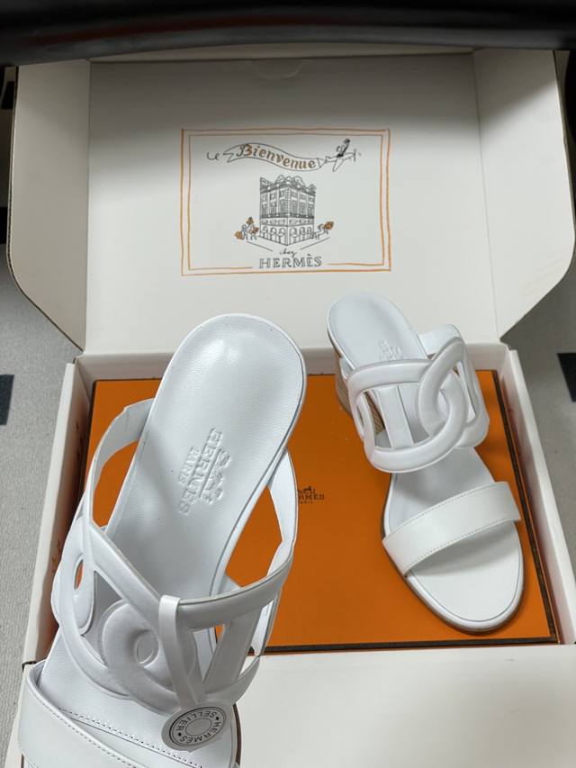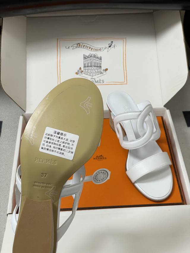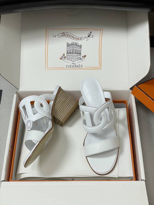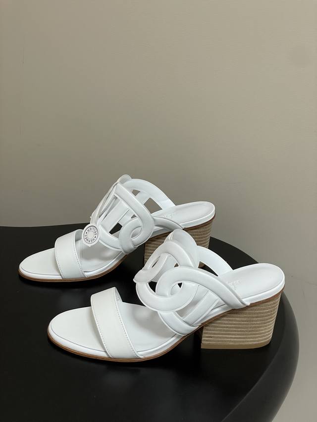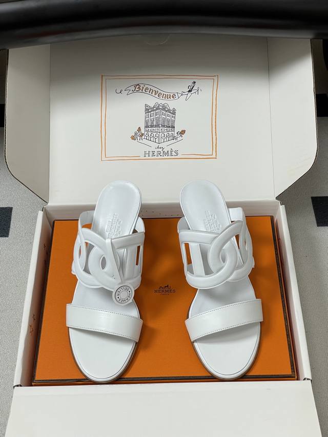 顶级品质 配高档飞机盒 DDD Hermes 爱马仕 Lipari 70凉鞋系列 H家粗跟拖鞋经典猪鼻子一字带高跟凉拖鞋 DDD 牛皮高跟凉鞋,袢带灵感源自经典“Chaine D'ancre”图案,适合夏日穿着,打造时尚造型。 DDD 鞋面:定制小牛皮 细腻羊猄皮 DDD 内里垫脚:羊皮 DDD 鞋底:双层意大利A级真皮大底 DDD 跟高:7Cm DDD 码数:35-39 40.41.42定做不退换 DDD