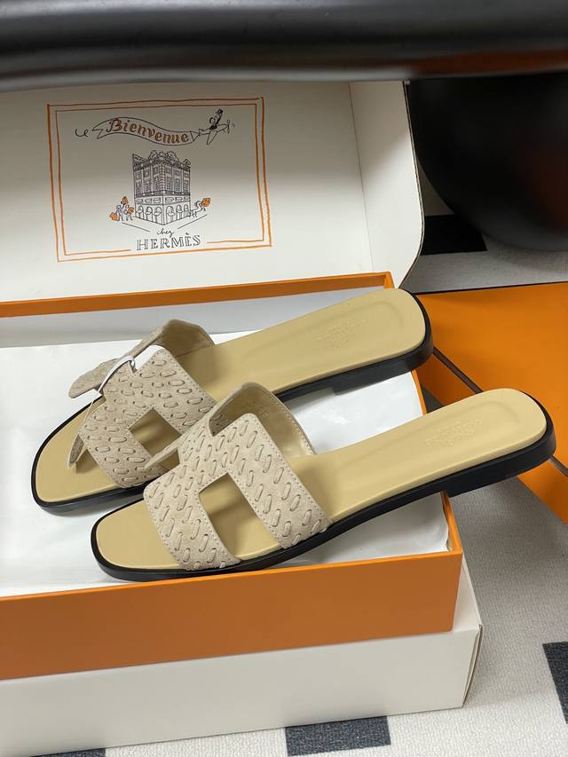 顶级品质 配高档飞机盒 Hermes 爱马仕 Oran凉鞋编织麂皮系列 2025H家最新版面 经典H编织绒面H鞋面凉拖鞋 编织麂皮山羊皮凉鞋,经典“H”型鞋面 打造时尚造型,可谓夏日良伴。 时尚又百搭 搭配H鞋面 超级舒服 每个细节都做到极致。设计简约流畅,打造时尚柔美的晚装造型。 鞋面:定制麂皮 内里垫脚:羊皮 鞋底:意大利A级真皮大底 码数:35-39 40.41.42定做不退换