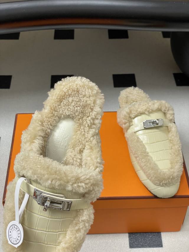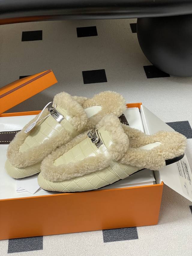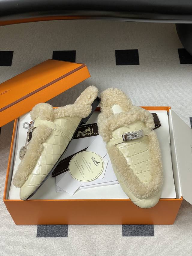 顶级品质 DDD Hermes 爱马仕 H家 25最新鳄鱼纹皮Oz羊毛穆勒鞋经典Kelly扣包头半拖鞋 H经典半拖毛拖鞋 DDD 小牛皮穆勒鞋,搭配经典镀钯Kelly鞋扣和羊羔毛一体,打造日常优雅风范 DDD 鞋面:鳄鱼纹牛皮 DDD 内里垫脚:羊羔毛 DDD 鞋底:意大利A级真皮大底 DDD 码数:35-39 40.41定做不退换 DDD