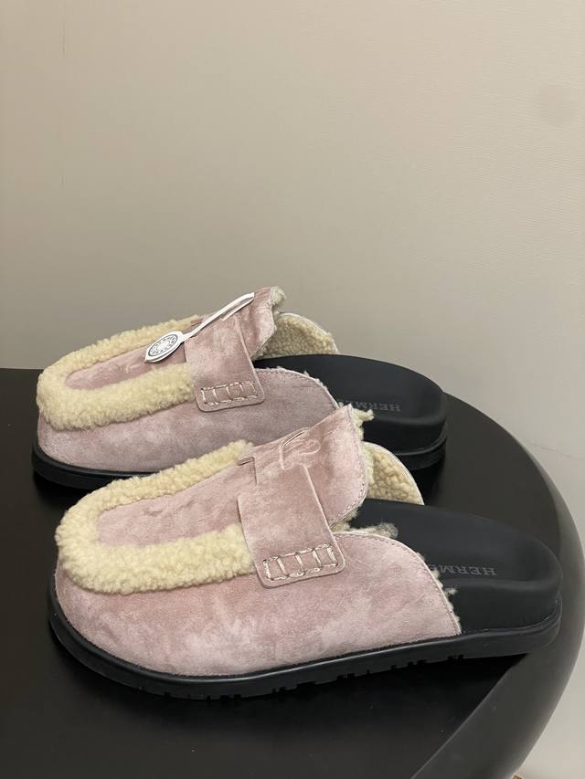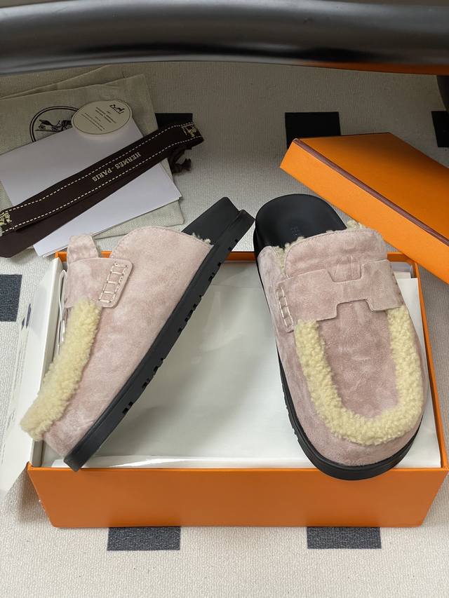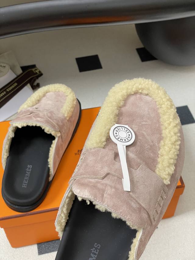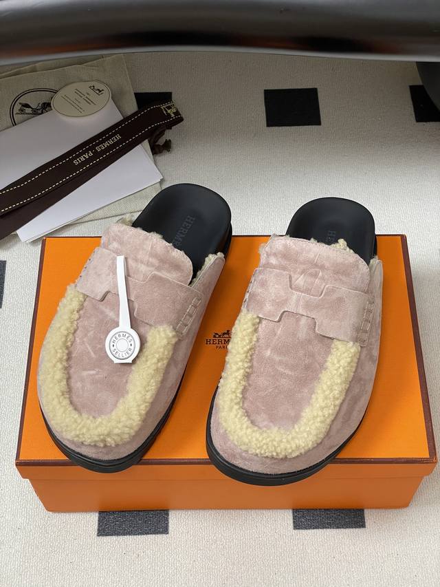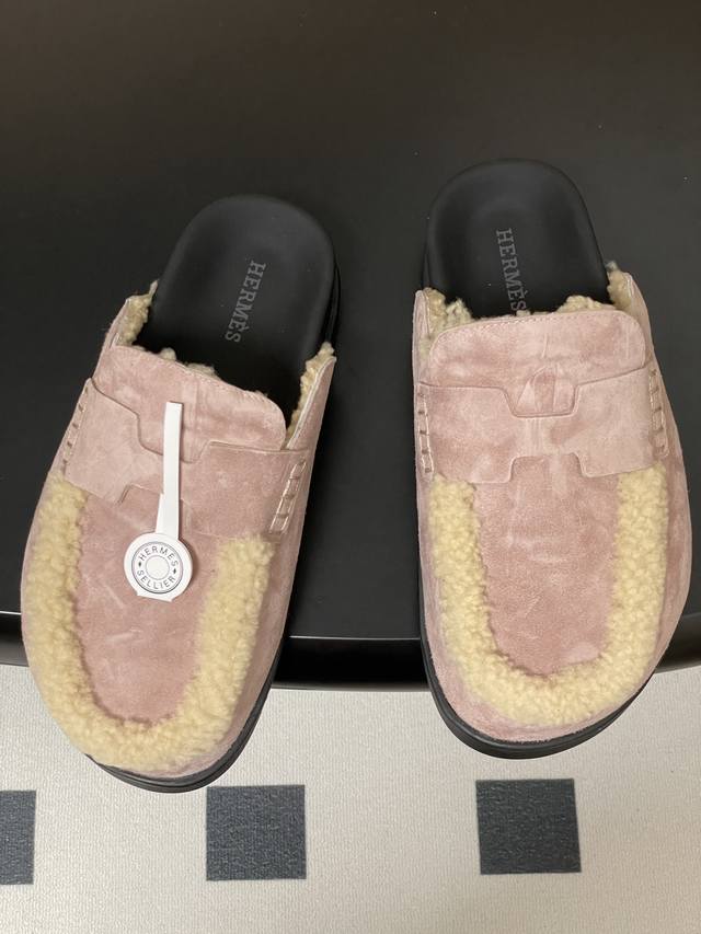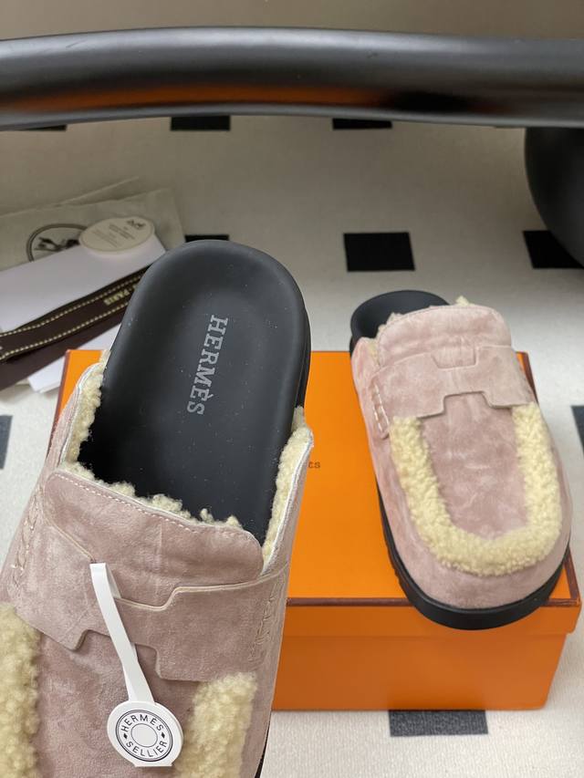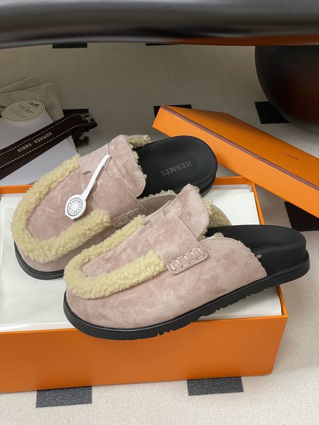 Hermes 爱马仕 H家 Go穆勒鞋系列 经典款二舅拖鞋穆勒羊毛半拖鞋休闲懒人鞋勃肯毛拖鞋