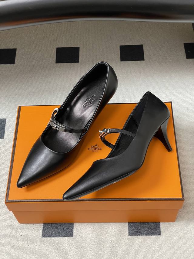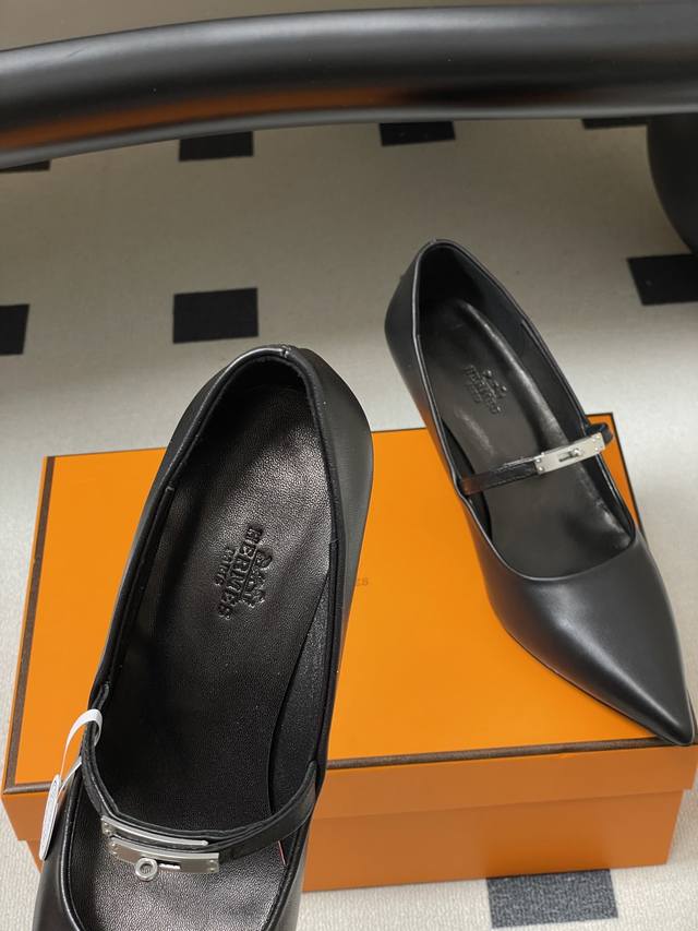 顶级品质 Ddd Hermes 爱马仕 H家26S春夏新款 Majeste60高跟鞋系列尖头猫跟高跟鞋 经典Kelly扣高跟单鞋 Ddd 尖头设计经典且时尚,能够在视觉上拉长腿部线条,使双脚看起来更加修长。鞋面上有一条细长的鞋带,增加了鞋子的层次感和设计感。鞋带上配有一个精致的金属扣装饰,为整体造型增添了一丝亮点和时尚感。 Ddd 这双鞋整体风格简约而不失优雅,融合了经典与时尚元素。主色调使其具有很强的百搭性,无论是搭配正式的服装还是休闲的服饰,都能展现出不同的风格魅力。 Ddd 鞋面:小牛皮 Ddd 内