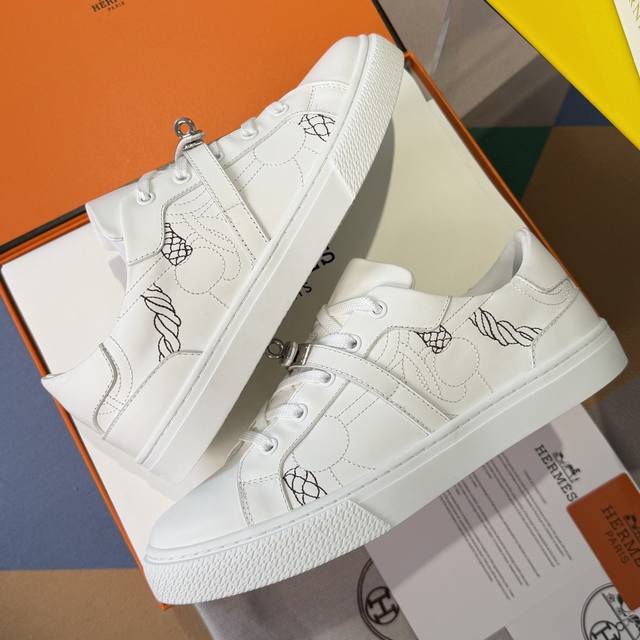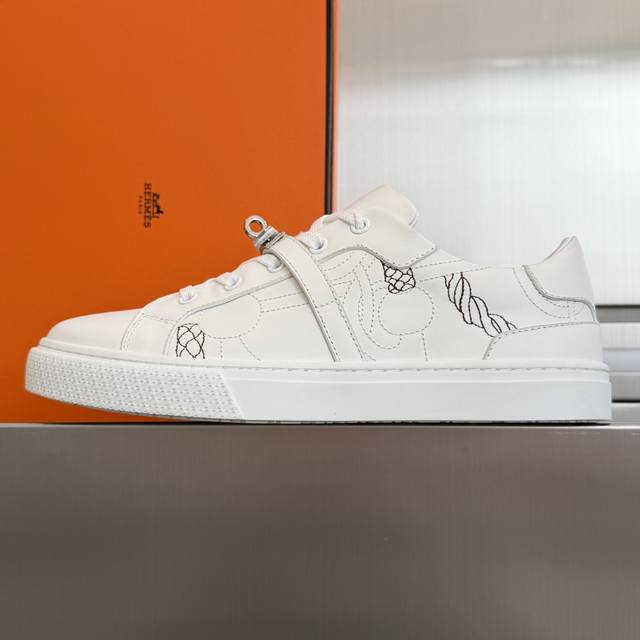 / 顶级版本:男款 DDD Hermes爱马仕 H家 Day系列 Kelly扣 休闲 运动鞋 小白鞋 DDD 小牛皮运动鞋,搭配功能性Kelly鞋扣。 DDD 打造