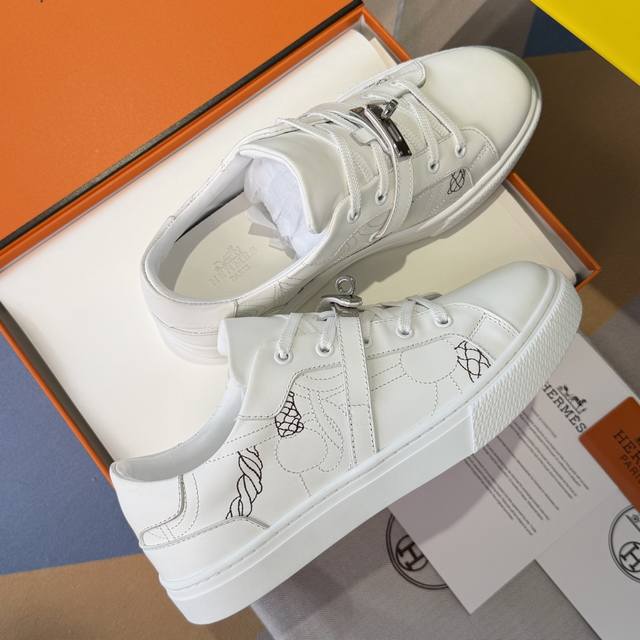 顶级版本:男款 DDD Hermes爱马仕 H家 Day系列 Kelly扣 休闲 运动鞋 小白鞋 DDD 小牛皮运动鞋,搭配功能性Kelly鞋扣。 DDD 打造