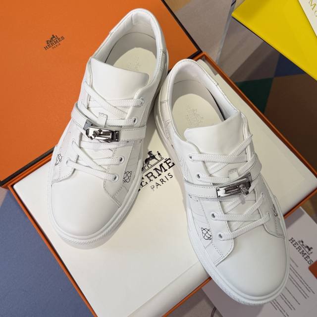 FFF 顶级版本:男款 DDD Hermes爱马仕 H家 Day系列 Kelly扣 休闲 运动鞋 小白鞋 DDD 小牛皮运动鞋,搭配功能性Kelly鞋扣。 DDD 打造时尚都市造型 DDD 配送专柜精美包装 DDD 面料:原版定制进口头层牛皮 DDD 内里:进口柔软羊皮里 DDD 鞋底:原版开模防滑橡胶材质 DDD 底厚:3Cm DDD Size: 男款39-46 DDD