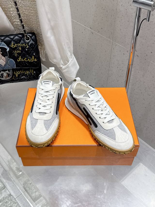 顶级版本 男10 Hermes 爱马仕休闲鞋情侣款 H家 四季新品运动鞋 H家 Heros 运动鞋新品 简约鞋面牛皮牛筋面,轻盈舒适透气!运动感十足!顶级精品 Size 35-45情侣款 全套专柜同步礼盒包装!