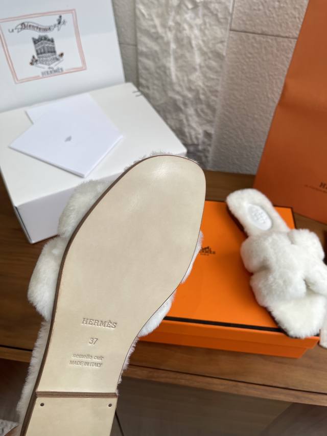 顶级版本: 配送专柜精美盒 Hermes 爱玛仕 25Ss 早秋新款 经典H型鞋面 Oran 毛拖 这款凉鞋如同盛情的邀约,期待与您展开美妙旅行。旅程始于阿尔及利亚的奥兰海岸,在此尽情沐浴灿烂阳光。随后,穿梭于土著民族恩德贝勒的房屋,欣赏令人眼前一亮的鲜艳色彩和几何线条。1997年,设计师皮埃尔 哈迪 Pierre Hardy 创作出这款作品,采用经典“H”型鞋面,风格简约而隽永。随着系列的更迭,这款夏日的标志性单品不断展现全新姿态,推出各种色彩和材质款式。 整鞋材料采用原版定制进口澳洲羊毛 大底:意大利