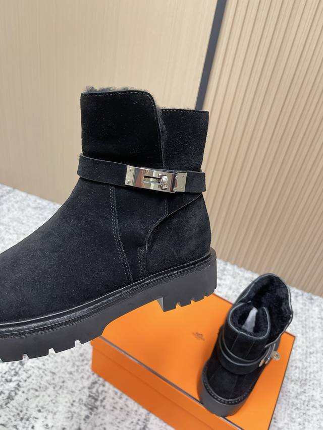 代购级Hermes 爱马仕Kelsy及踝靴Kelly扣短靴 小牛皮及踝靴,搭配Kelly鞋扣。打造时尚造型。 进口真皮大底 Size:35-39 40 41 4