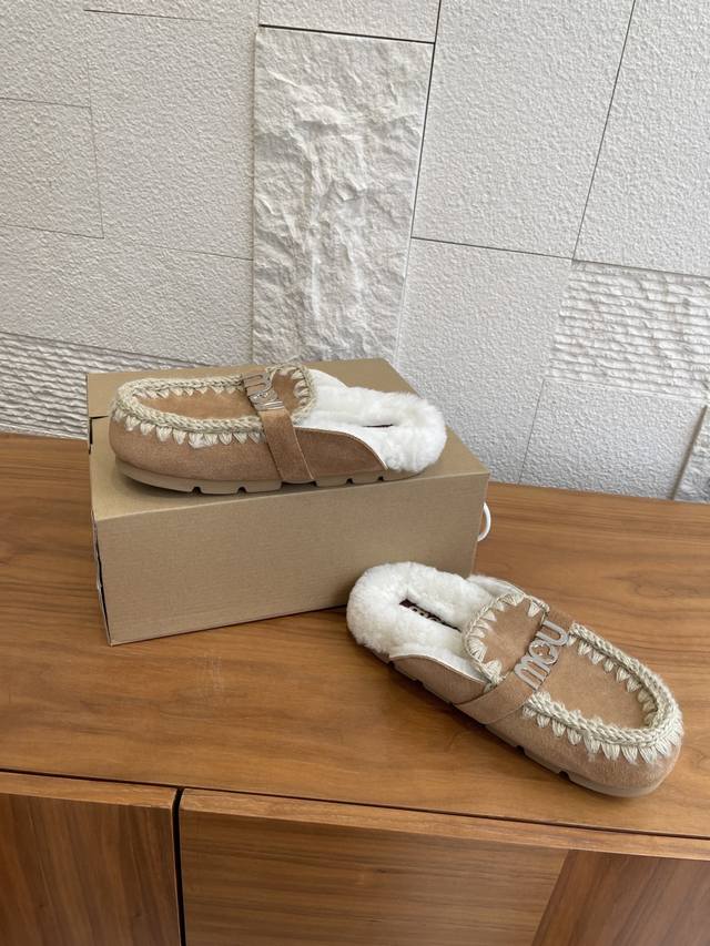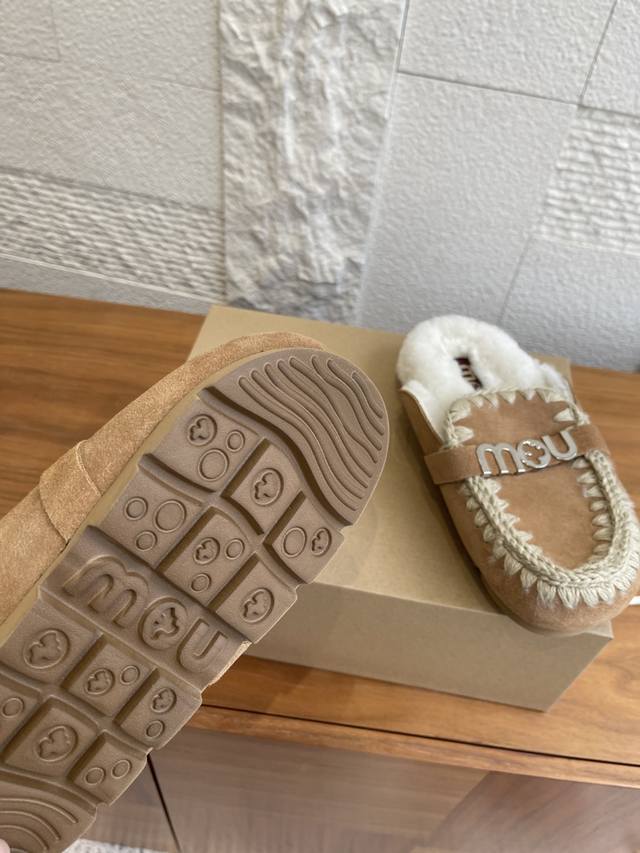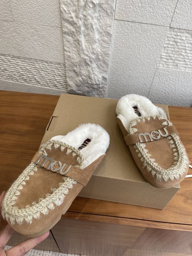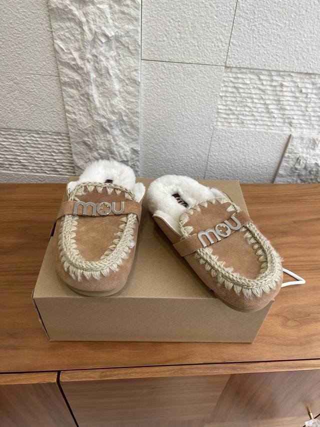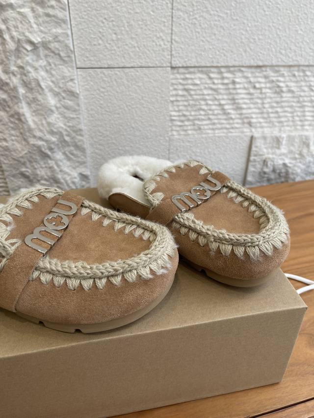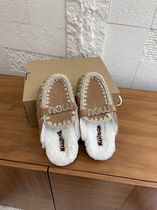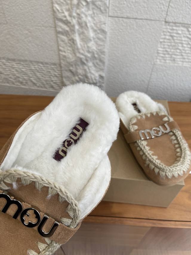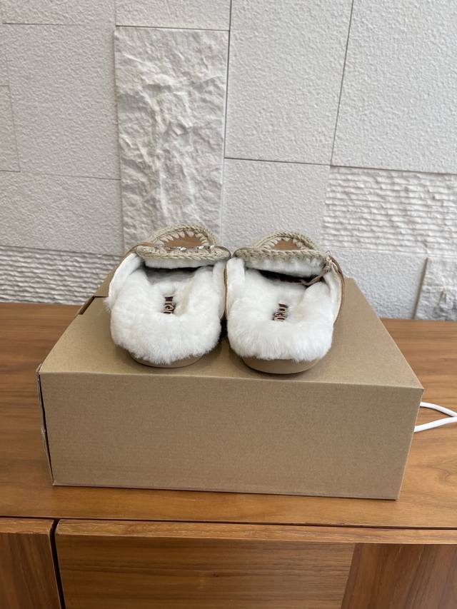 顶级版本: DDD Mou 2025 秋冬新款 手工钩缝面 金属Logo 后空 半拖 拖鞋 DDD 英国小众品牌Mou的Eskimo系列毛毛拖鞋,棕色皮革+厚实白色毛绒,手工钩缝细节超有质感。鞋面有“Mou”字样,搭配金属卡扣,时髦又实用。鞋底柔软,穿着舒适,秋冬保暖必备,室内外都能穿!Mou被称为“雪地靴中的爱马仕”,舒适又百搭,是Ugg的高颜值替代款,深受年轻人喜爱。 DDD 面料:进口牛反绒 DDD 内里:羊皮毛一体 DDD 大底:原版开模Eva发泡大底 DDD Size:35-41 40 41定做