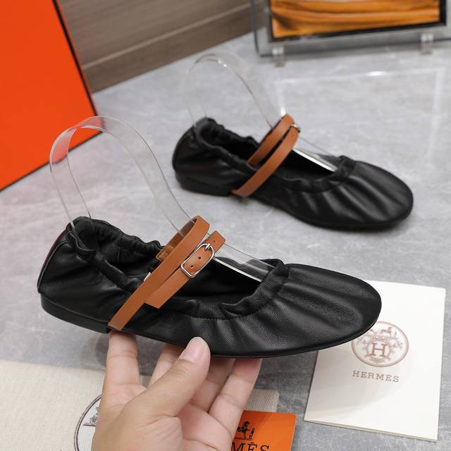 / 顶级版本Hermes 爱马仕24S春夏 经典芭蕾舞鞋玛丽珍鞋系列 经典复古高级感单品 好穿又好搭配 上脚秀气! 鞋面采用进口小牛皮 内里踮脚混种羊皮 意大利进口