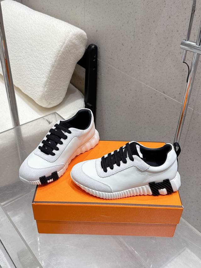 / 顶级版 情侣款 男码10 Hermes 爱马仕 Bouncing男女同款休闲运动鞋 情侣款牛皮 麂皮 网面休闲鞋 女码 35-41 40、41不退换 男码 39
