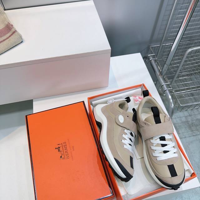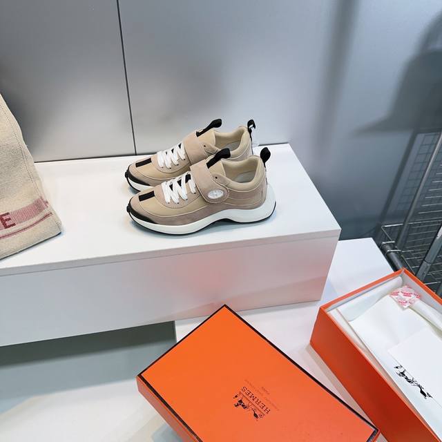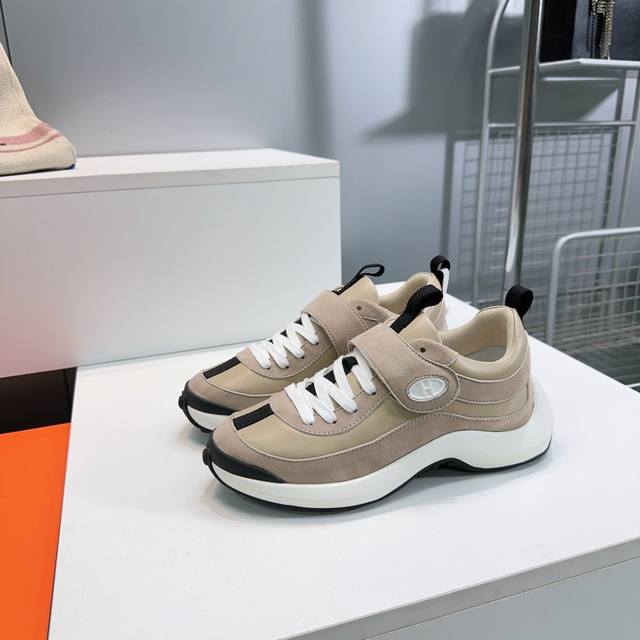 高品质出厂 !顶级品质Hermes 爱马仕25秋冬魔术贴厚底休闲运动鞋! 休闲之履运动老爹鞋结合与麂皮山羊皮,鞋面饰以标志性“H”字母,鲜艳色彩展现活力,延续品