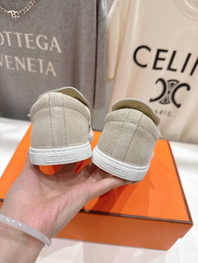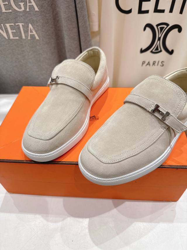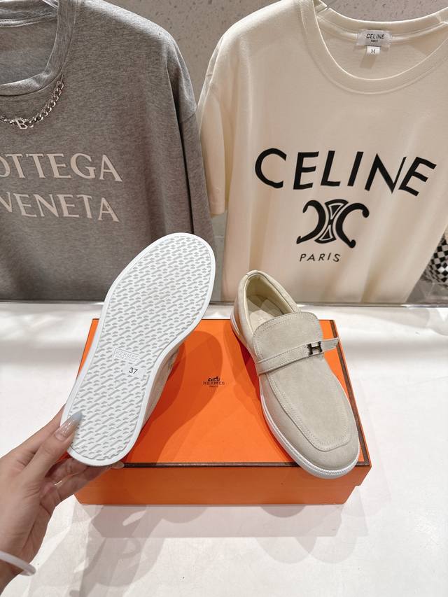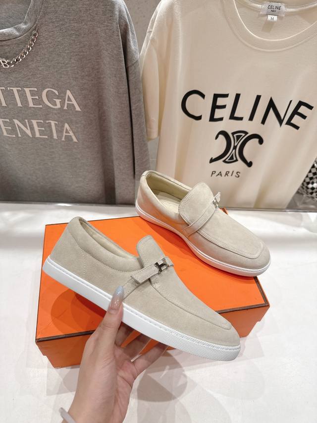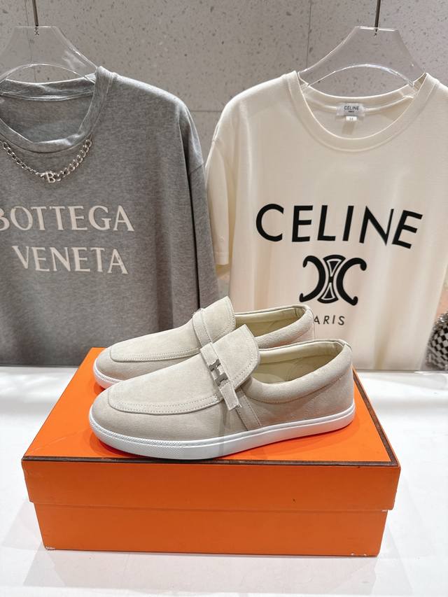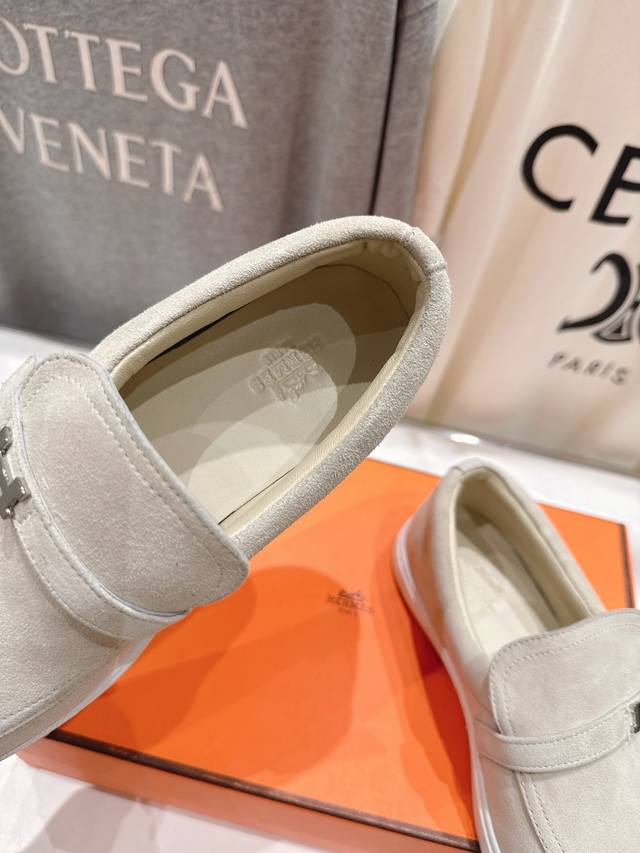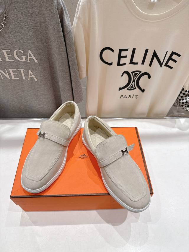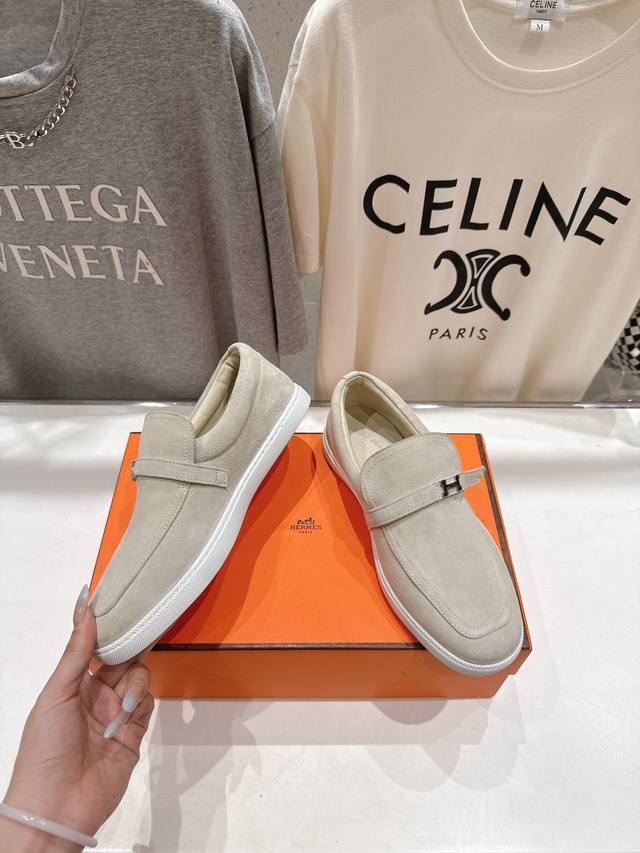 / 高版本出厂 男码+10 Hermes 爱马仕H家F056 2025Ss新品情侣款休闲鞋乐福鞋 经典休闲风格,经典耐看!原版倒模楦型,极致1:1形体,进口小牛皮呈
