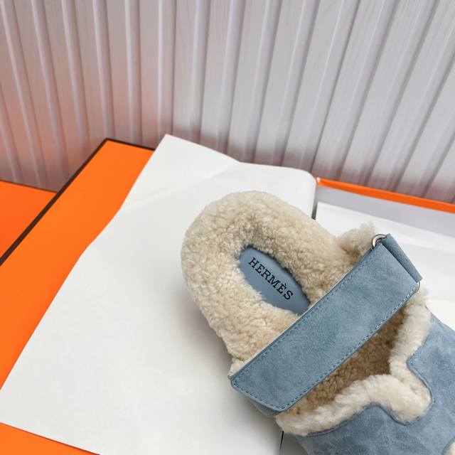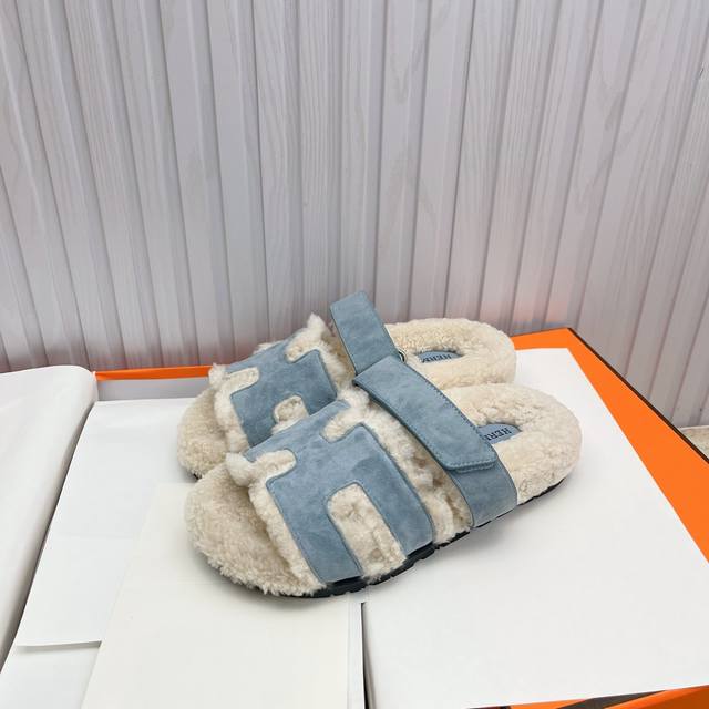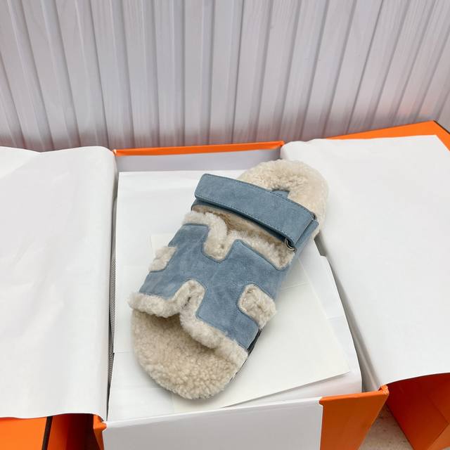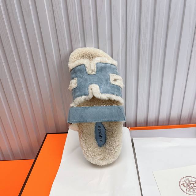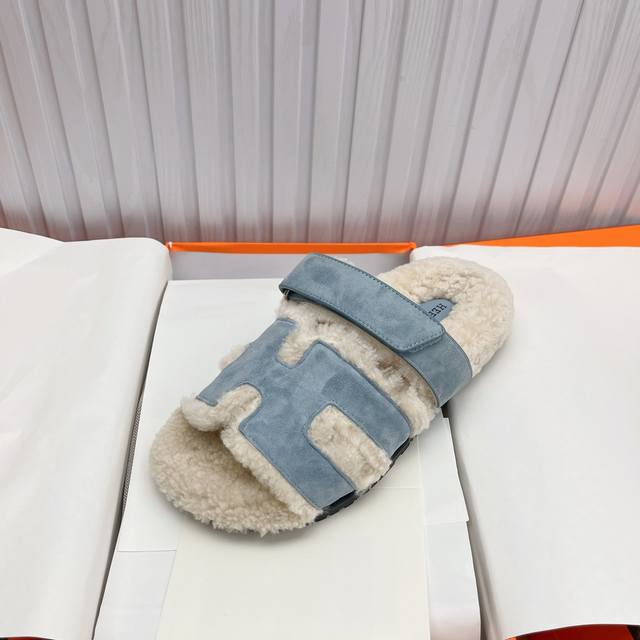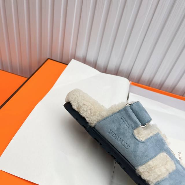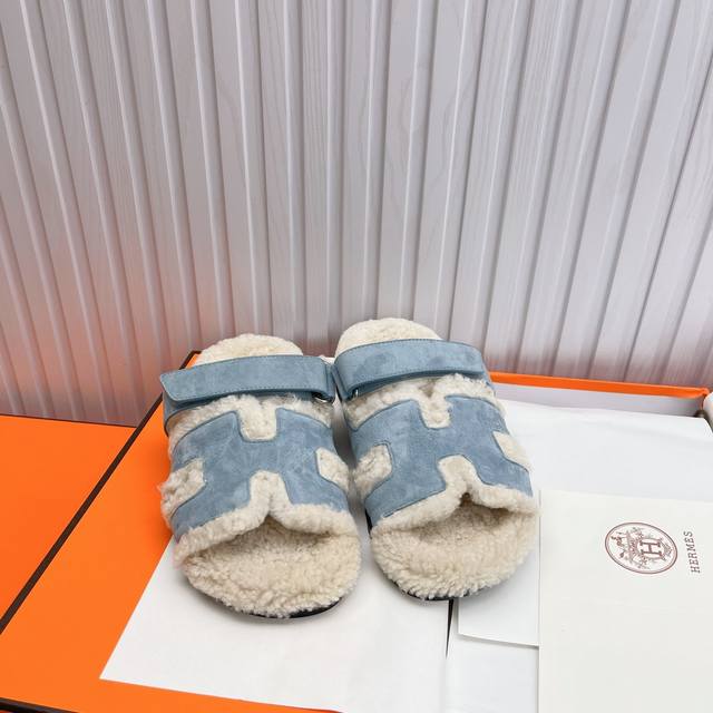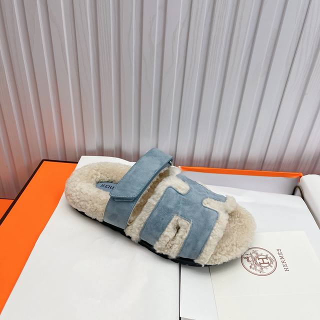 高版本Hermes 爱马仕羊毛二舅拖 最新凉鞋拖鞋,搭配各种彩色袜子,潮爆了! 鞋面:进口牛皮 内里:进口牛皮 大底:Tpu防滑耐磨大底 女35-41