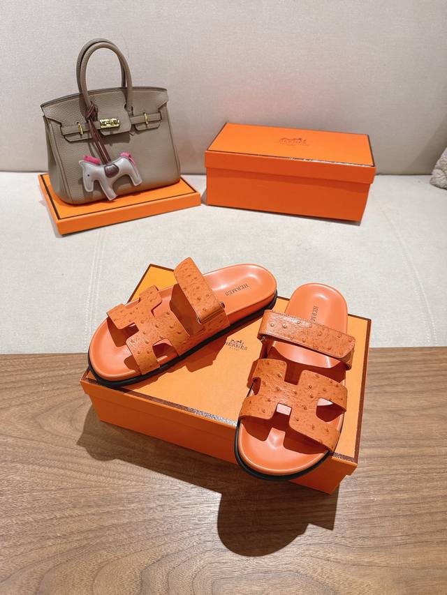 鸵鸟纹』 二舅拖全系列出厂价Pp女款 男款 Herme*2025新款H拖鞋 鲜清艳新 ~时尚活力清气春息 不多解释了,买过的都知道 Tpu防滑大底 35-39