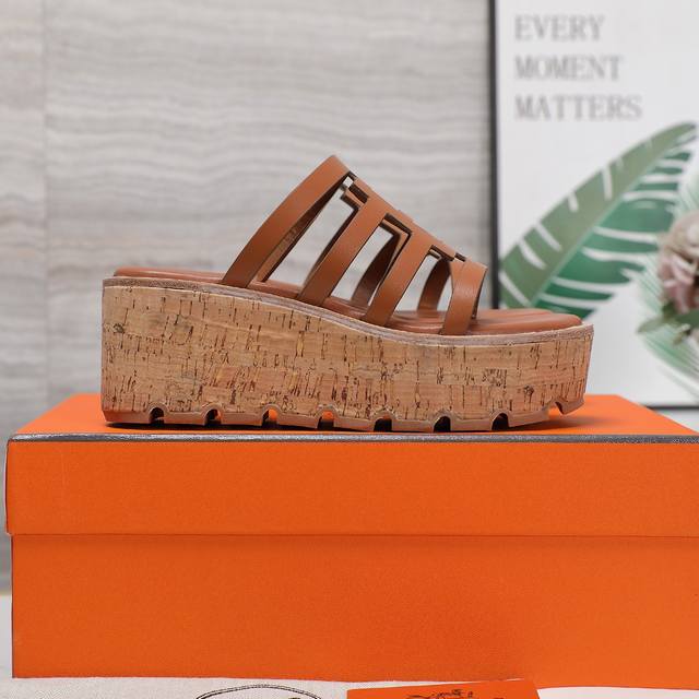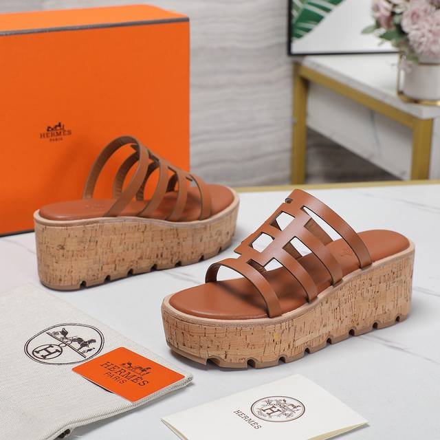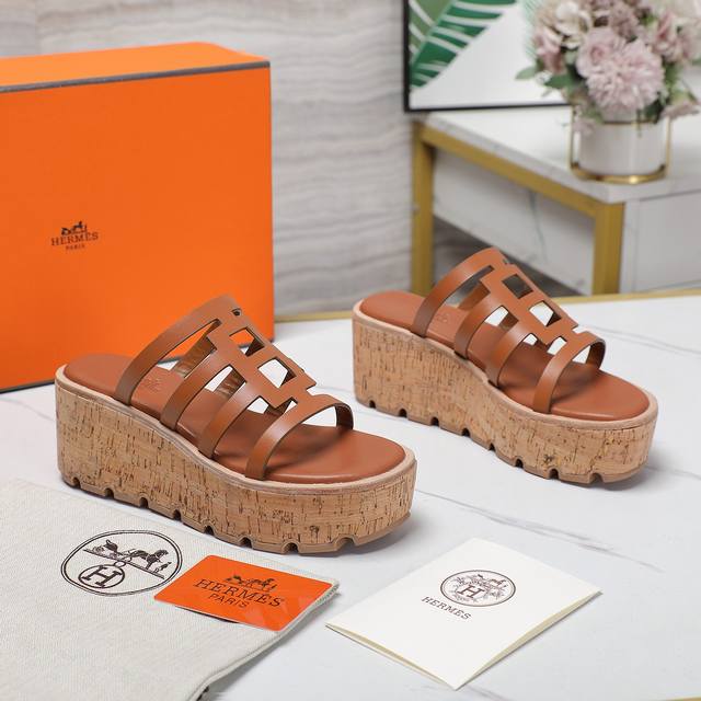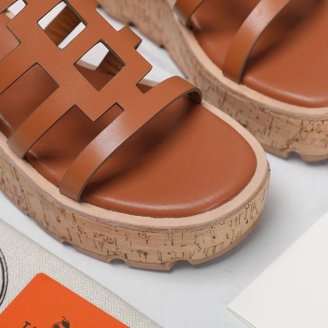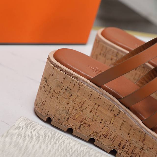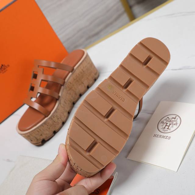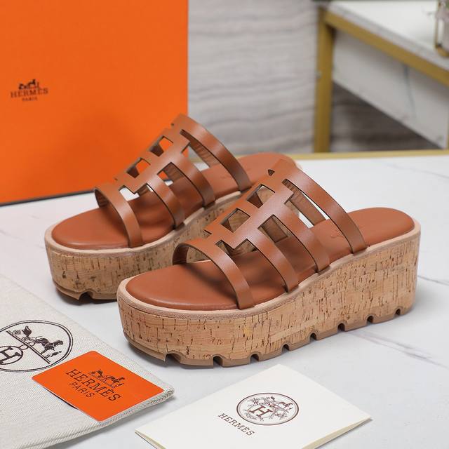 2024爱马仕将经典延续 Hermès 木纹坡跟H拖鞋