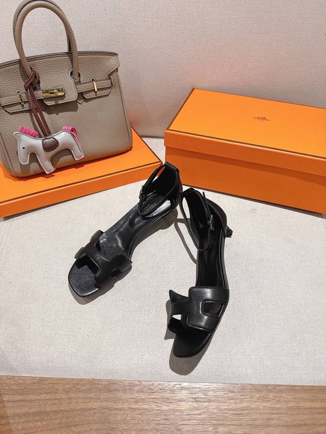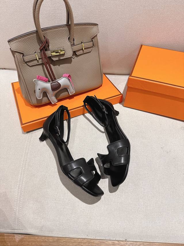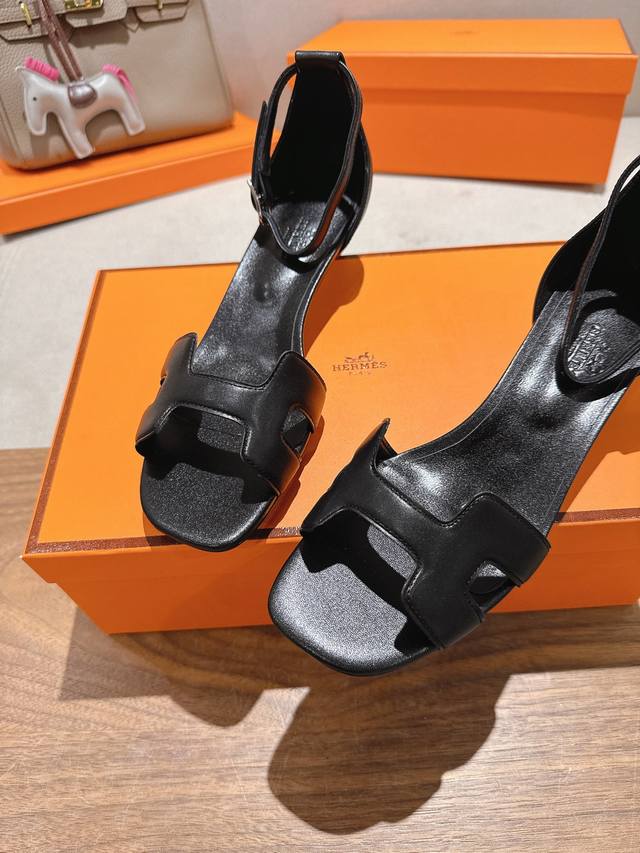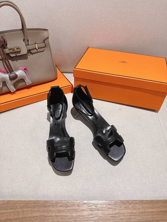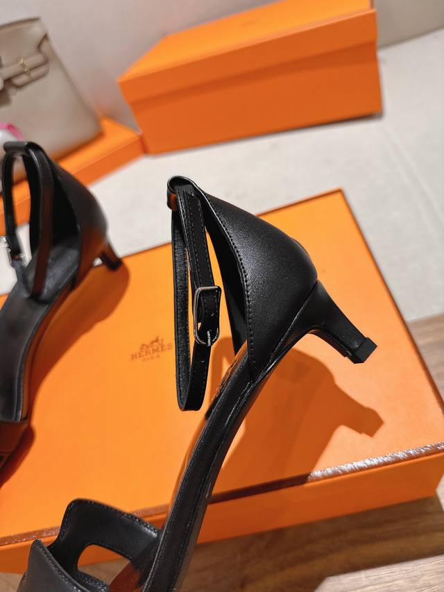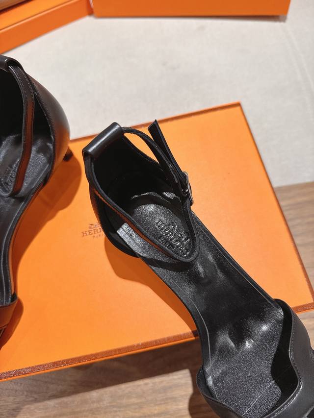 4.5Cm方头皮面 出厂价P Hermes 爱马仕 Joy 105高跟凉鞋 时尚又百搭 搭配H鞋头 超级舒服 每个细节都做到极致 搭配同色调标志性纯鞋扣 设计简