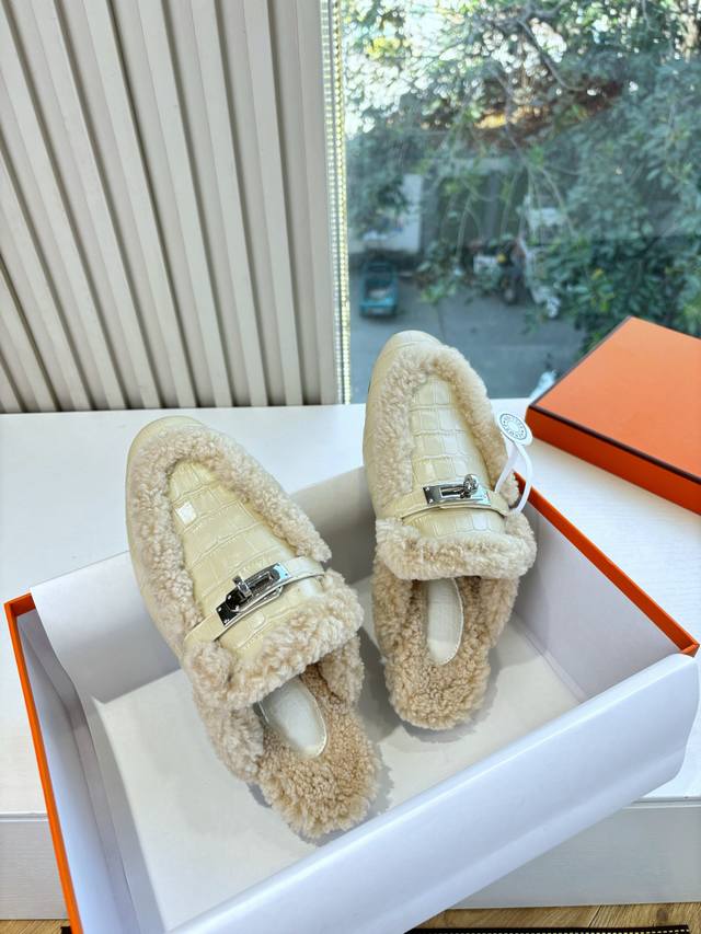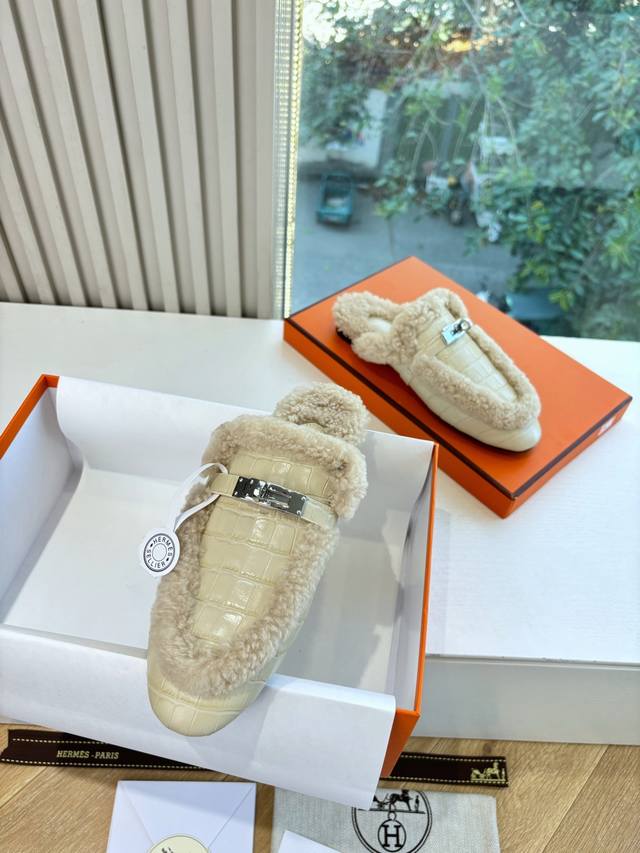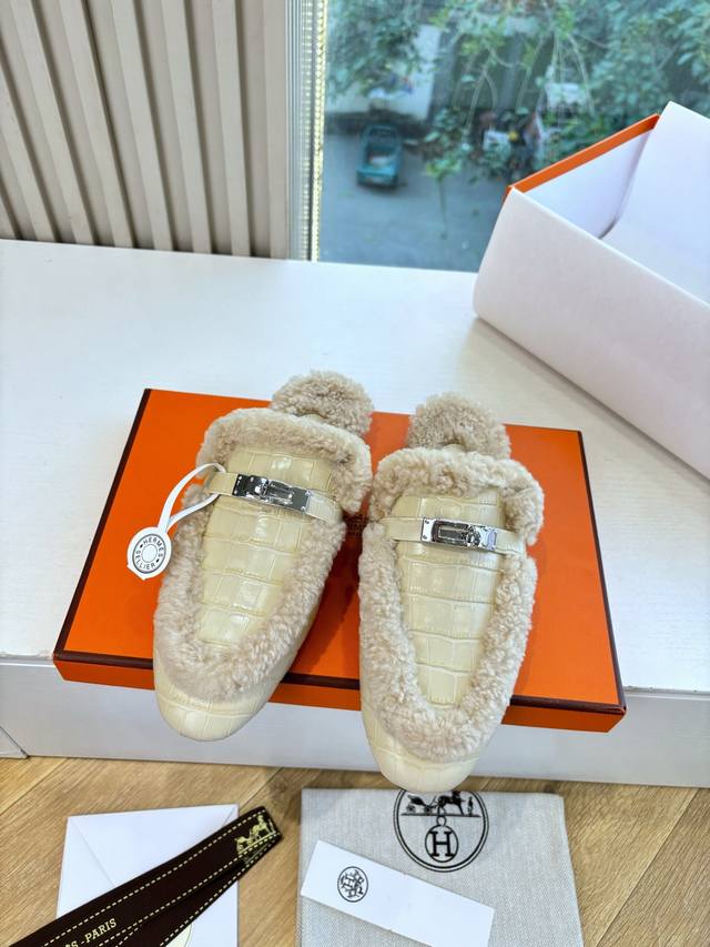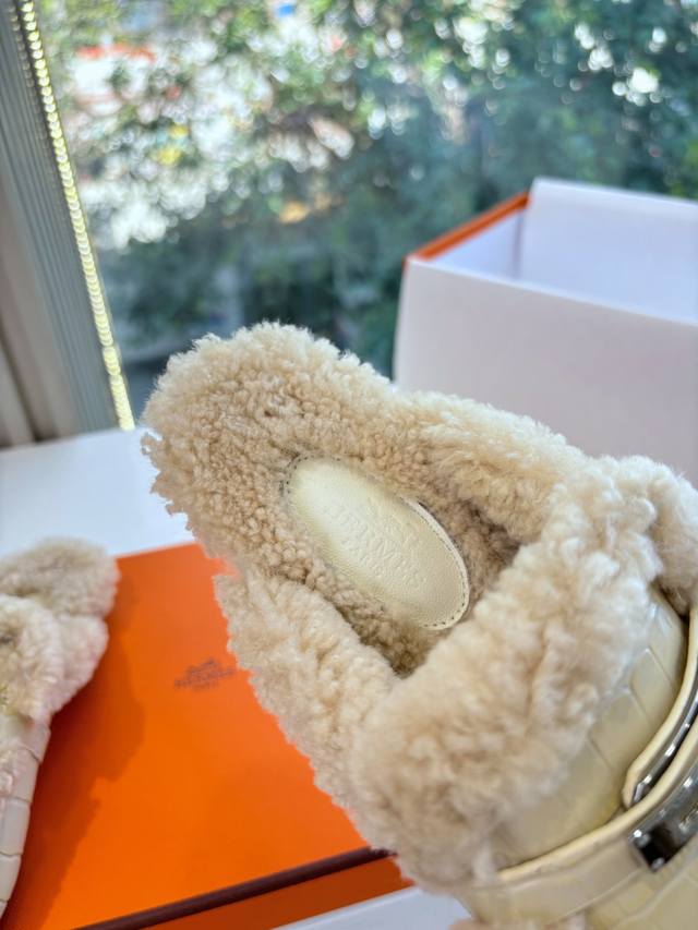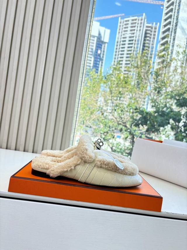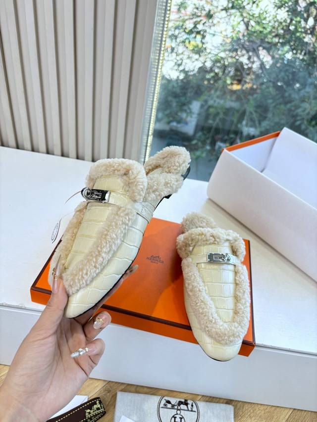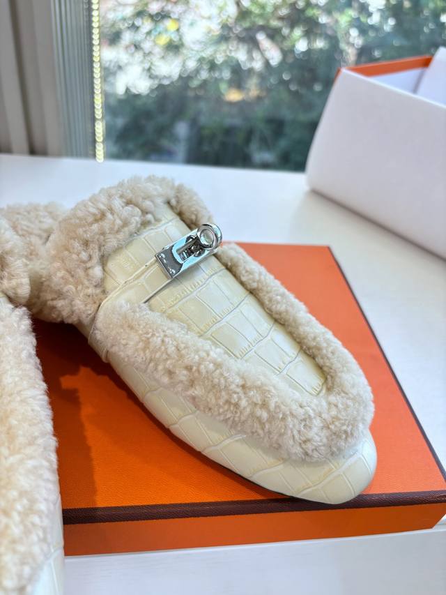 G203顶级*爱马仕泰迪毛包头皮毛一体卷糕毛二舅拖 今年面料均选用A+皮毛一体卷糕毛 DDD 毛茸茸的 敲可爱的,踩云脚感,光脚或者搭配个袜子穿,都时髦的不行哦 DDD 面料:压纹牛皮 泰迪羊羔毛 DDD 内里:进口羊羔毛 DDD 鞋底:原版真皮鞋底 DDD 尺码:36-39 40.41定制 不退不换 DDD