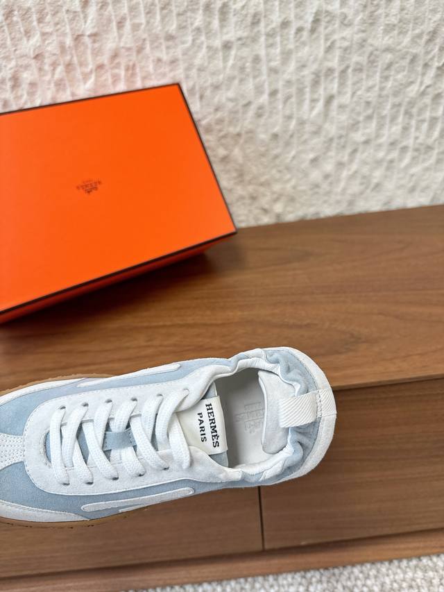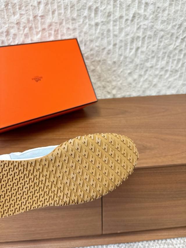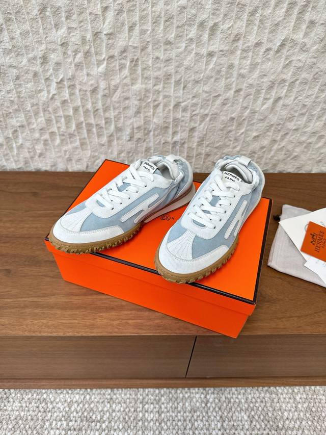 / G652 男码+10 Hermes 爱马仕 25Ss新款 Jet系列 情侣款 休闲 运动鞋 德训鞋 原版购入开发 做货 镂孔柔软麂皮山羊皮运动鞋,配有鞋底,饰有