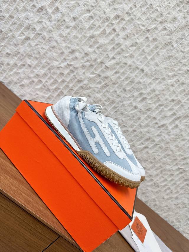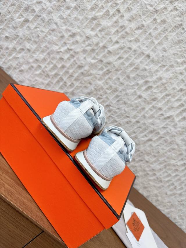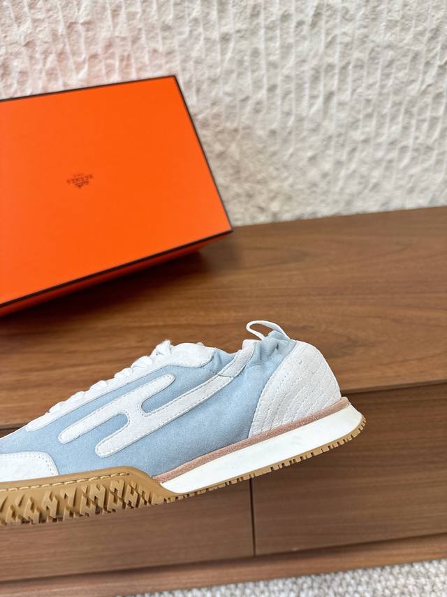 G652 男码+10 Hermes 爱马仕 25Ss新款 Jet系列 情侣款 休闲 运动鞋 德训鞋 原版购入开发 做货 镂孔柔软麂皮山羊皮运动鞋,配有鞋底,饰有