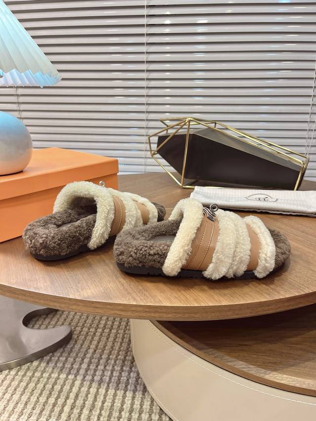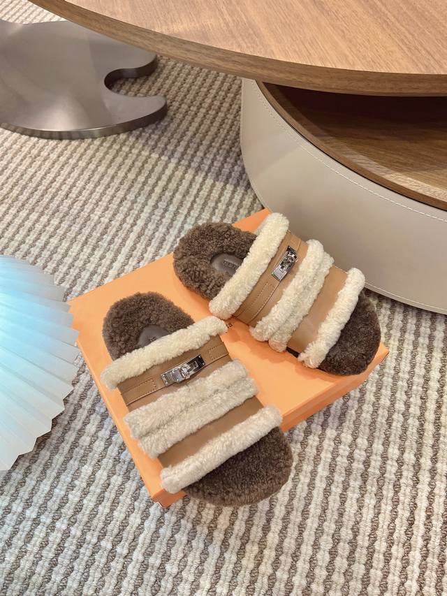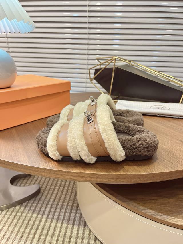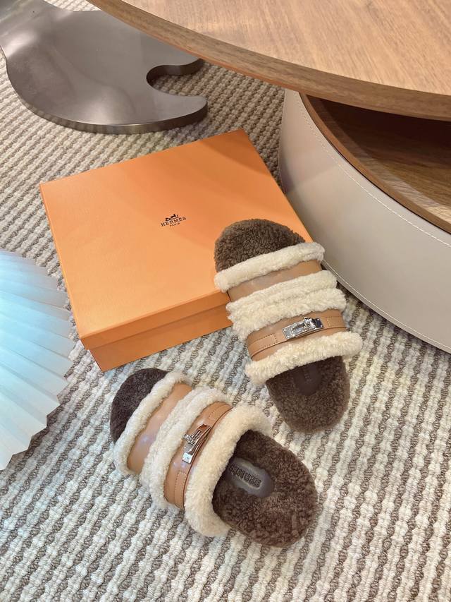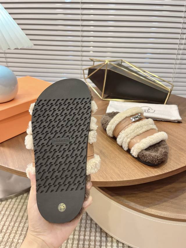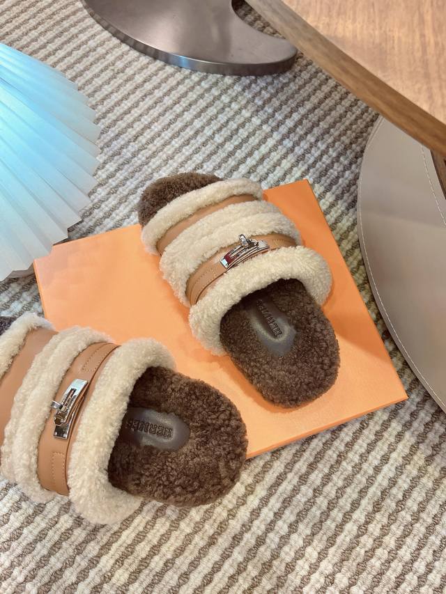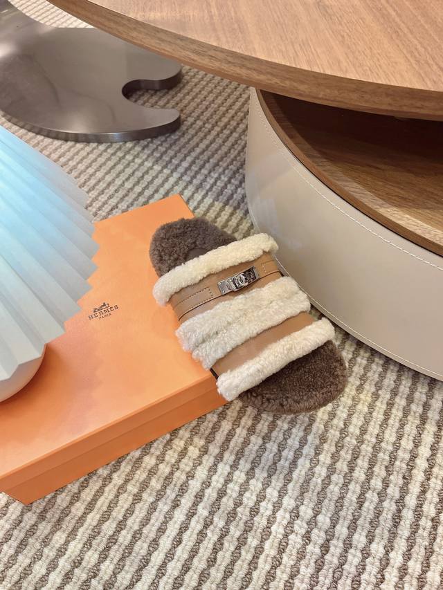 / HermèS 爱马仕25Wf新品 Kelly休闲毛拖 当经典Kelly扣邂逅柔软羊毛 H家毛拖便成了优雅与舒适的完美融合。 标志性Kelly扣点缀鞋身 凝练品牌
