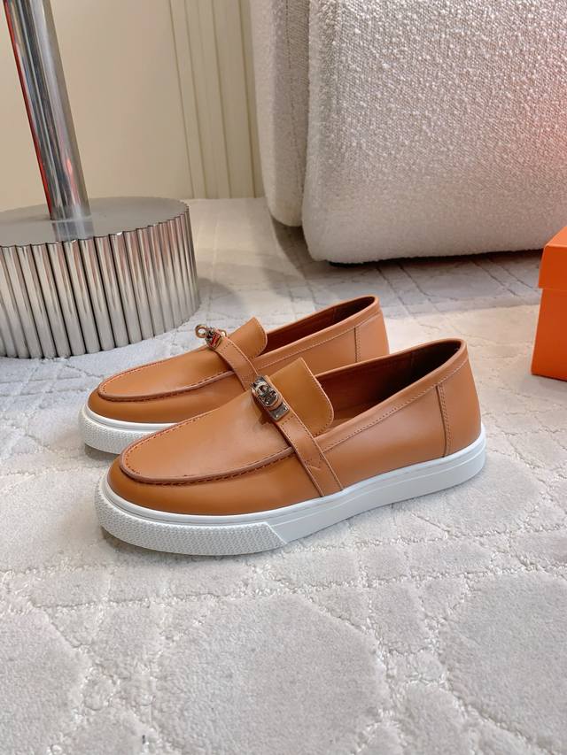 Herme*新款休闲鞋 男女同款 一脚蹬设计超适合懒人党 无论约会逛街还是通勤出差 都能轻松Hold住 快和你的另一半Get同款 让每一步都走出Cp感吧!