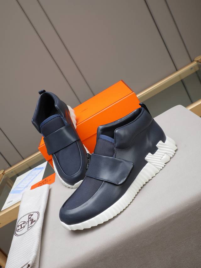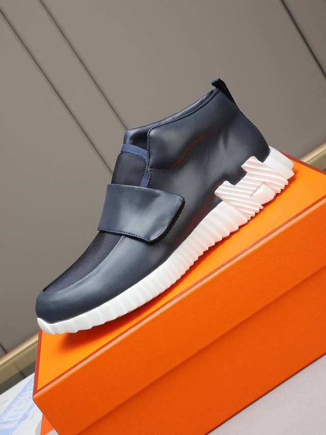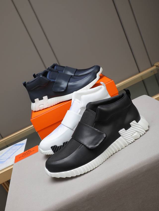 Herme* 爱马仕Bouncing运动鞋,男士休闲运动鞋,鞋面头层小牛皮水洗羊里!质感十足,轻盈鞋底装饰撞色图案,打造百搭时尚风格。 码数:38-44 45定