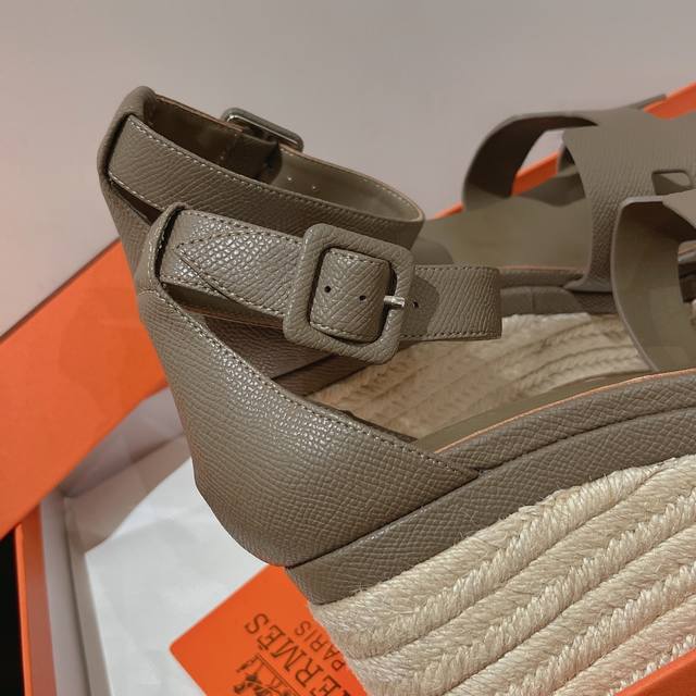 Herme* H家 春夏新款Elda草编凉鞋 独家原版开发草编水台私模 万年经典百搭单品!纯手工制作顶级版本 欢迎对比 坡跟8.5Cm 水台高5Cm 鞋面小牛皮