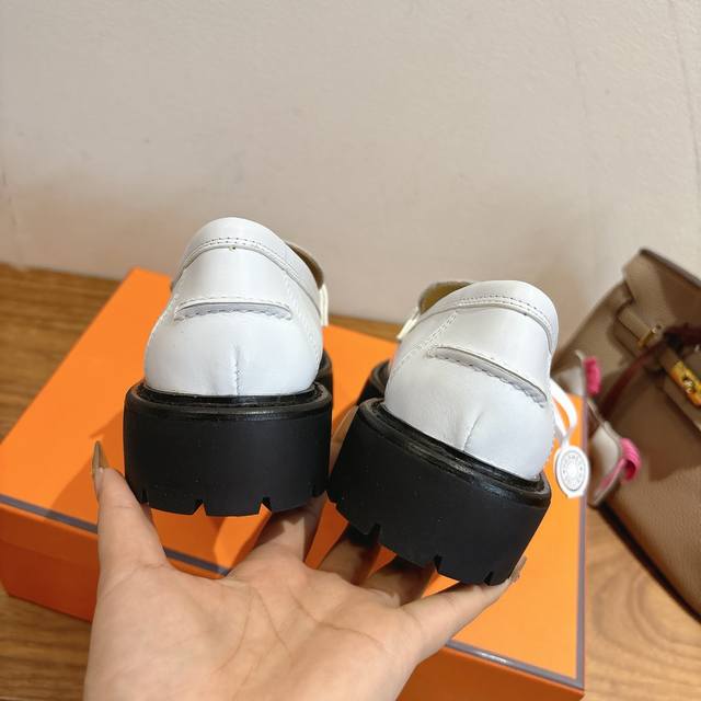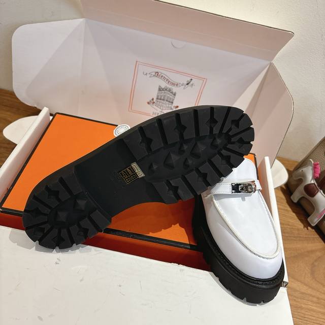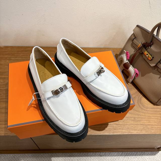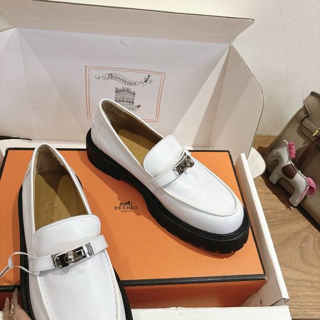 / Herme S 乐福鞋Ss25新款 经典系列,原版小牛皮材料, 不同颜色搭配,真的是好看极了,名媛必备品! 内里小羊皮,鞋底意大利进口材料! :带原版包装及Vi