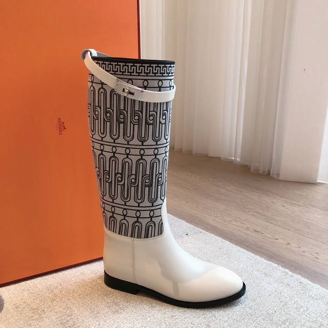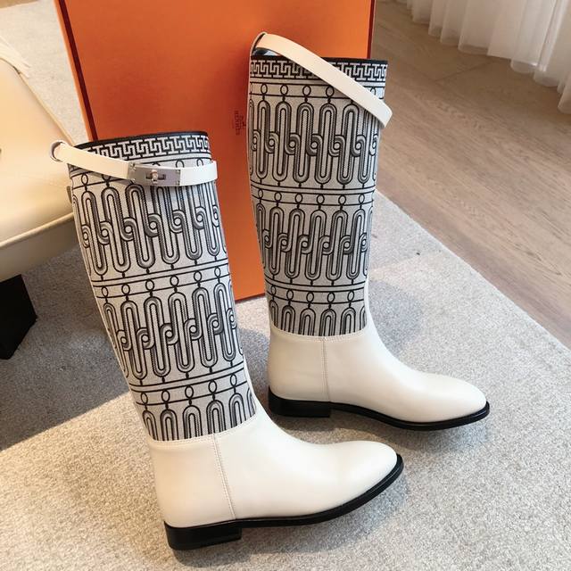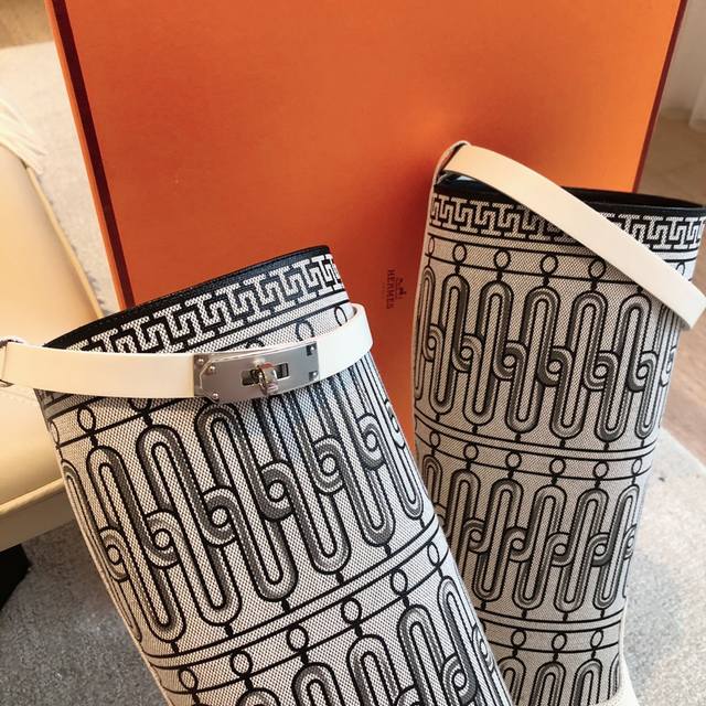 Herme S 经典Kelly长靴Ss25新色 经典Kelly半,原版小牛皮材料,3D打印牛仔布,不同颜色搭配,真的是好看极了,养马富婆必备品! 内里小羊皮,鞋