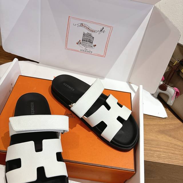 Hermes 顶级版本# 爱马仕Extra系列 老舅鞋 复古 二舅 拖鞋 H拖 魔术贴 凉鞋 原版购入开发 做货...