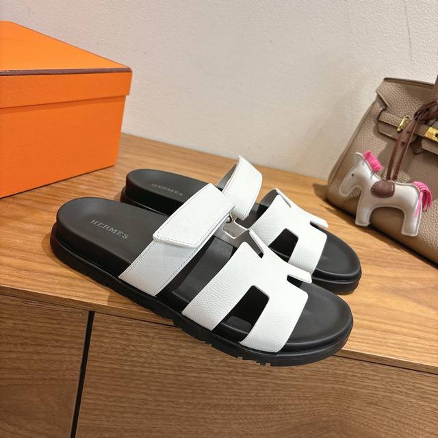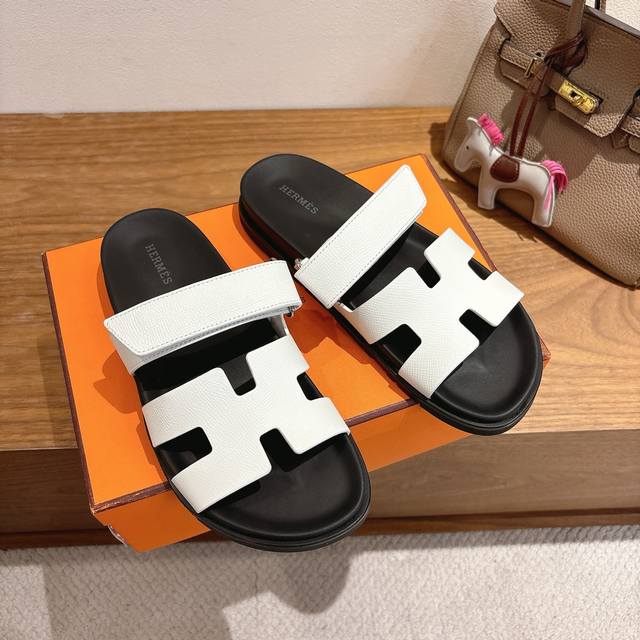 P310 新色 Hermes 爱马仕H家Chypre系列 魔术贴二舅拖鞋 顶级品质 鞋面:进口头层石头纹牛皮 手掌纹牛皮 渐变色牛皮 山羊皮 羊京...