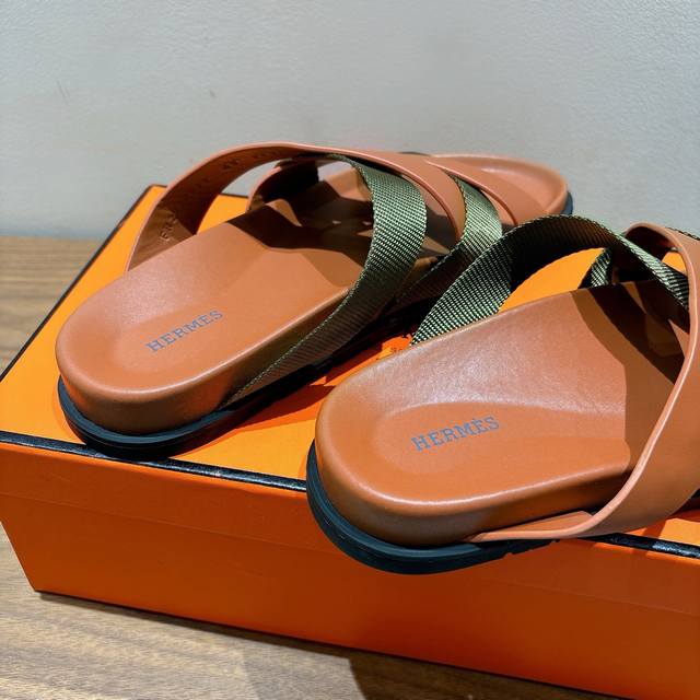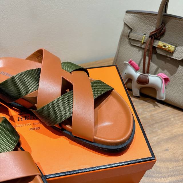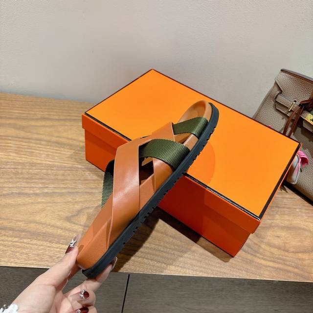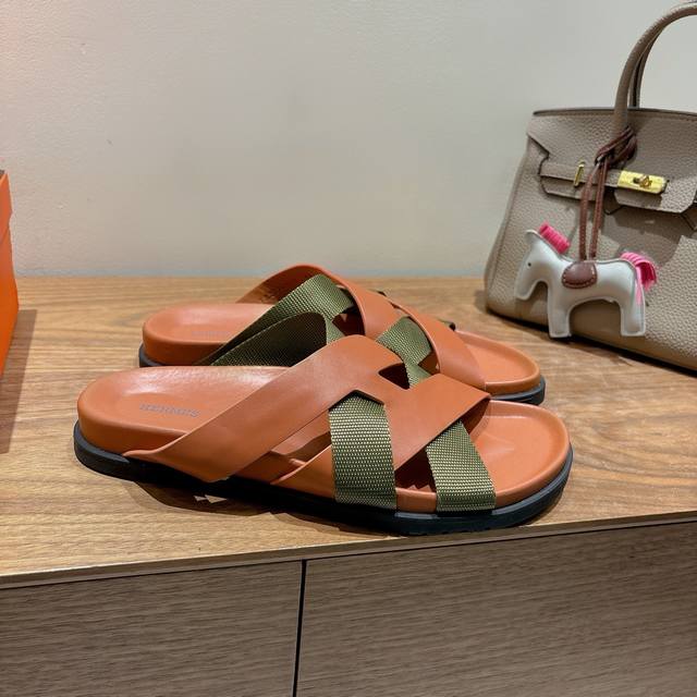 半拖系列 情侣款出 Hermes 爱马仕 H系带 后空一脚蹬 半拖...
