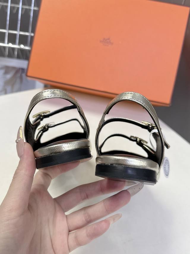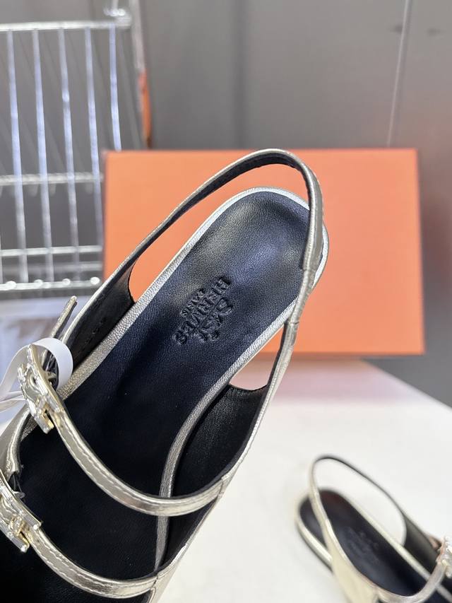 橙子出厂价p hermes 爱马仕 初夏新款 H扣一字带高跟凉鞋 跟高 10Cm 码数 35-41