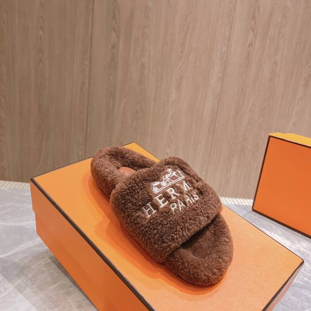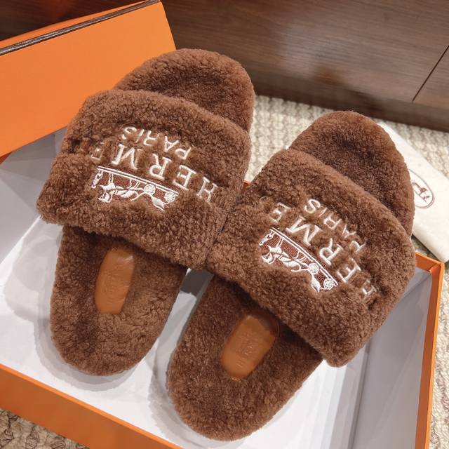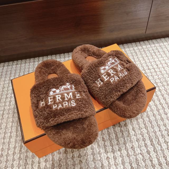 / Herm*Es爱马仕 新款老爷车 一波惊喜爱马仕毛拖妥妥的时尚款顶级出品轻奢Hermes泰迪毛拖真的软软糯糯超美进口真丝电绣.......初冬的第一双毛拖,真的