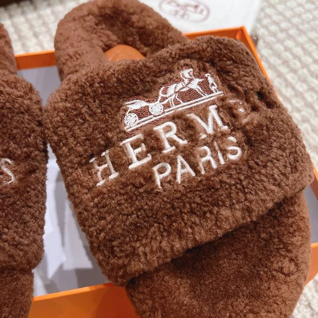 Herm*Es爱马仕 新款老爷车 一波惊喜爱马仕毛拖妥妥的时尚款顶级出品轻奢Hermes泰迪毛拖真的软软糯糯超美进口真丝电绣.......初冬的第一双毛拖,真的